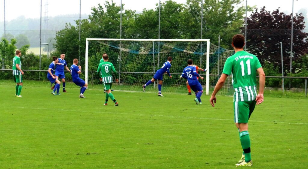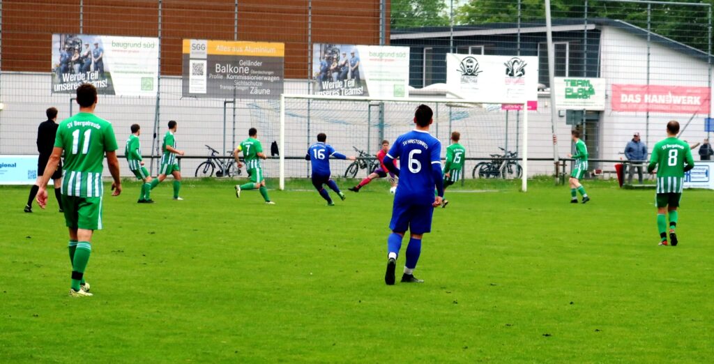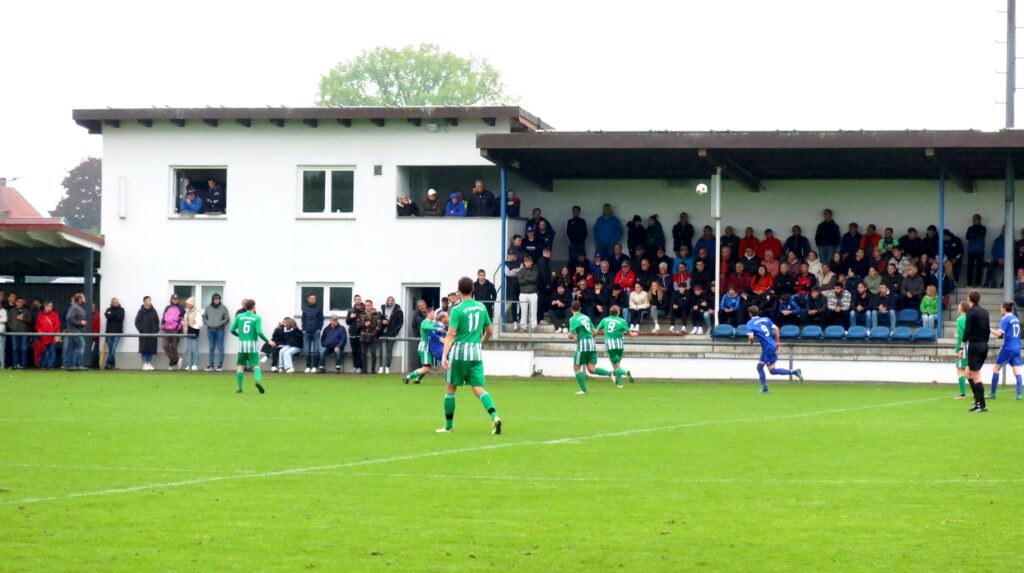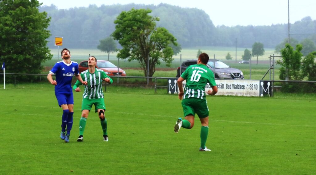 Mit einem 3:0 Pausenstand rechnete man schon, aber Janus Graf vom SVB gelang dann kurz vor der Halbzeit der Anschlusstreffer zum 1:3 aus Bergatreuter Sicht. In der 2. Spielhälfte gab es weitere Großchancen vor beiden Toren. Der regennasse, glitschige Rasen hatte seine Tücken und so gab es immer wieder Ausrutscher, die nicht durch Fouls entstanden sind. Ob alle Entscheidungen des Schiedsrichters richtig waren, bezweifelten etliche Zuschauer vor allem aus dem Gästeblock.