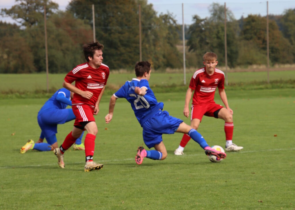 Reutes Zweite konnte im kleinen Derby gegen Haisterkirch aus dem Vollen schöpfen und das Trainertrio war mit dem kompletten Team heiß auf den ersten Saisonsieg. Zunächst allerdings verlief die Partie ziemlich schleppend, auf Reutener Seite musste Spielführer Henri Hoffmann schon nach sechs Minuten verletzungsbedingt vom Platz. Die erste halbe Stunde bot meist nur Magerkost, auf beiden Seiten wollte nicht all zu viel gelingen. Nach einem Eckball gelang den Hausherren dann aber der wichtige Führungstreffer. Einen scharf getretenen Eckball von links bugsierte Niklas Maucher am kurzen Pfosten ins Tornetz und die Heimmannschaft konnte das 1:0 bejubeln. Mit diesem Spielstand ging’s dann auch in die Halbzeitpause.