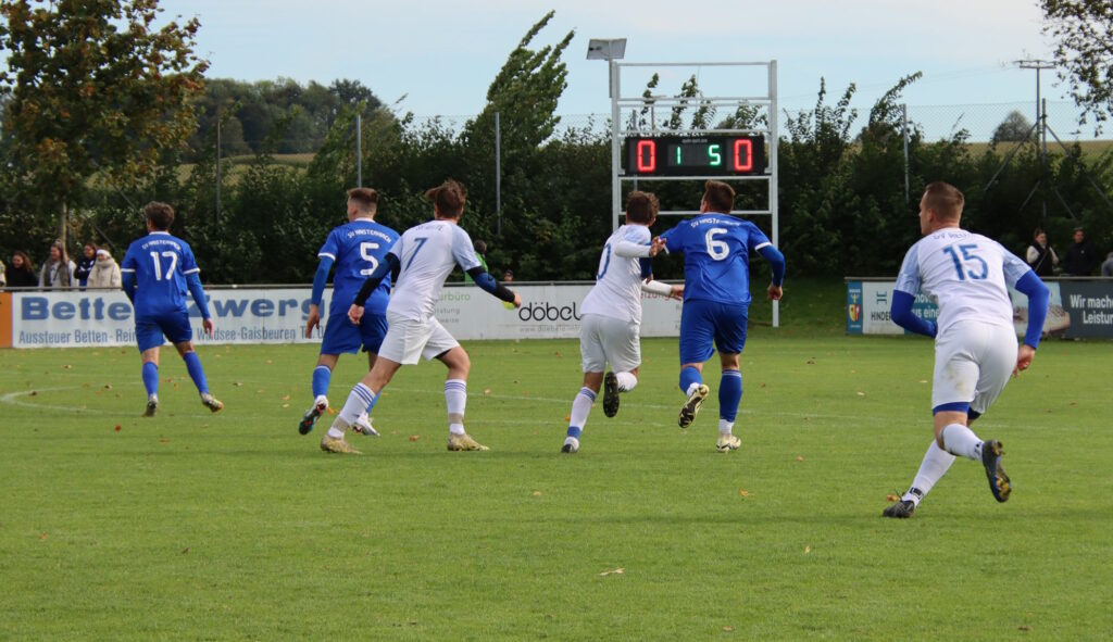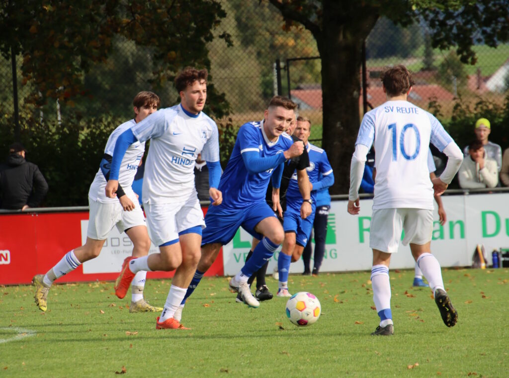 Reutes Zweite konnte im kleinen Derby gegen Haisterkirch aus dem Vollen schöpfen und das Trainertrio war mit dem kompletten Team heiß auf den ersten Saisonsieg. Zunächst allerdings verlief die Partie ziemlich schleppend, auf Reutener Seite musste Spielführer Henri Hoffmann schon nach sechs Minuten verletzungsbedingt vom Platz. Die erste halbe Stunde bot meist nur Magerkost, auf beiden Seiten wollte nicht all zu viel gelingen. Nach einem Eckball gelang den Hausherren dann aber der wichtige Führungstreffer. Einen scharf getretenen Eckball von links bugsierte Niklas Maucher am kurzen Pfosten ins Tornetz und die Heimmannschaft konnte das 1:0 bejubeln. Mit diesem Spielstand ging’s dann auch in die Halbzeitpause.