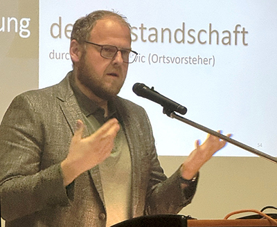 In ihren Redebeiträgen wiesen Oberbürgermeister Matthias Henne und Ortsvorsteher Matthias Covic (Bild) darauf hin, dass das umfangreiche ehrenamtliche Engagement des der SVH-Akteute wesentlich zur Pflege der Dorf- und Stadtgemeinschaft beitrage, dass dadurch sportliche Erfolge und Gesundheitsvorsorge ermöglicht würden, dass Generationen, also Jung und Alt, davon profitierten und so „Glücksmomente“ vermittelt würden.