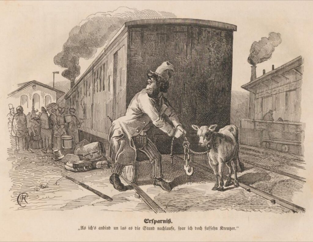 Das Volkslied „Auf dr schwäbsche Eisenbahne“, erstmals um 1853 schriftlich erwähnt, entstand als humorvolles Spottlied auf die neue Eisenbahn. Es ist vollständig im schwäbischen Dialekt verfasst und greift reale Orte wie Stuttgart, Ulm, Biberach, Meckenbeuren und eben Durlesbach auf. Die Melodie geht vermutlich auf ein Basler Soldatenlied zurück. In der bekanntesten Strophe bindet ein Bauer seinen Geißbock hinten an den Zug – und findet später nur noch den Kopf. Bis heute gilt das Lied als fester Bestandteil der oberschwäbischen Kultur. In Durlesbach erinnert ein Denkmal mit Figuren aus dem Lied daran – und in Reute lebt die Geschichte in der Goiß weiter, die seit 55 Jahren ein Stück Eisenbahnromantik, Volksliedtradition und Fasnetsfreude miteinander verbindet.