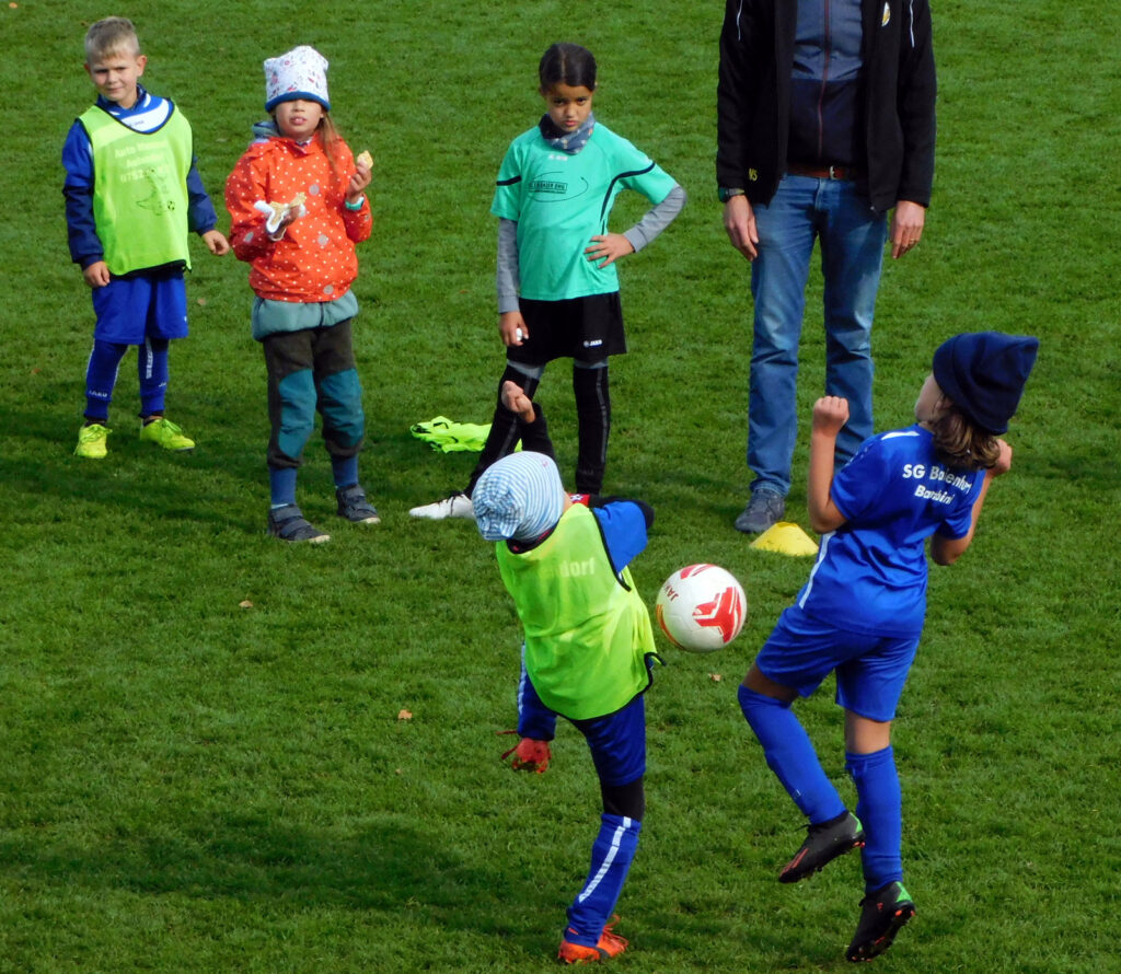 Den Fußball-Sprösslingen (Mädchen wie Jungen) war ein wirklich interessanter, Spaß machender Fußballtag geboten worden. Die jüngsten Fußballer (Kindergartenalter) waren auch mit Feuereifer bei der Sache und wurden von Betreuern wie Eltern ermunternd von den Spielfeldrändern her angefeuert und gelobt.