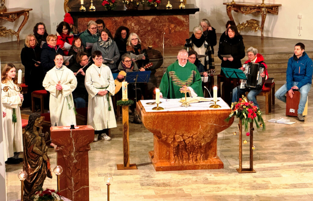 Haisterkirch – Viele Gläubige aus der gesamten Seelsorgeeinheit Bad Waldsee waren zum ersten Sonntagabendgottesdienst im Jahr 2025 am Sonntag (26. Januar) wieder nach Haisterkirch gekommen. Es hat sich längst herumgesprochen im Nahbereich von Haisterkirch, dass sich das Vorbereitungsteam dieser Abendgottesdienste in der Pfarrkirche St. Johannes Baptist – überwiegend engagierte Frauen – große Mühe macht für eine würdige Gestaltung dieser monatlichen Abendgottesdienste.