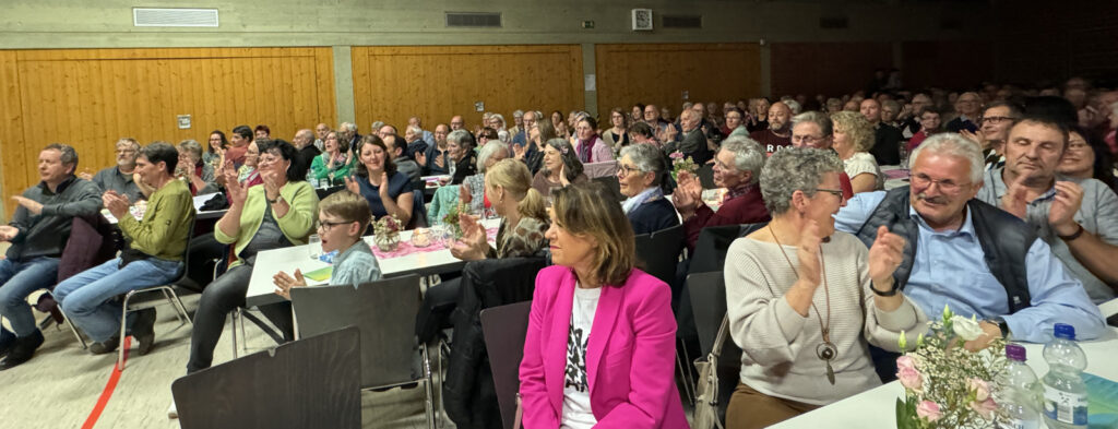 Das aktuelle Repertoire war bestückt mit launigen Songs, wie „Wochenend voll guter Laune“, „Ein graues Haar“. Ein Block mit bekannten Seemannsliedern mit „Santiano“, „Die Gitarre und das Meer“, „Heimatlos“ kam bestens an. Auch die Gesangskost mit „Jo, woisch no“, geboten von einem Doppelquartett unter Leitung von Stefan Werner (mit Ziehörgele) und der Song „Mit unter 40 Jahren“ von vier Sängern unter 40 Jahren vorgetragen, fand beim Publikum großen Anklang, ebenso auch das Lied „ Übern See“, das vom Doppelquartett gefühlvoll interpretiert wurde.