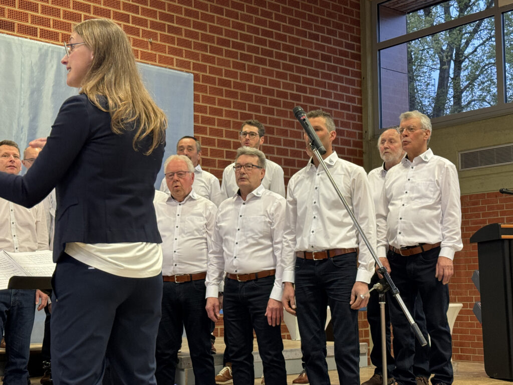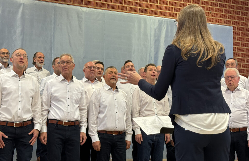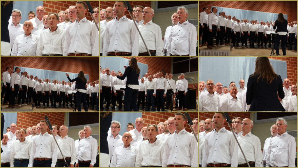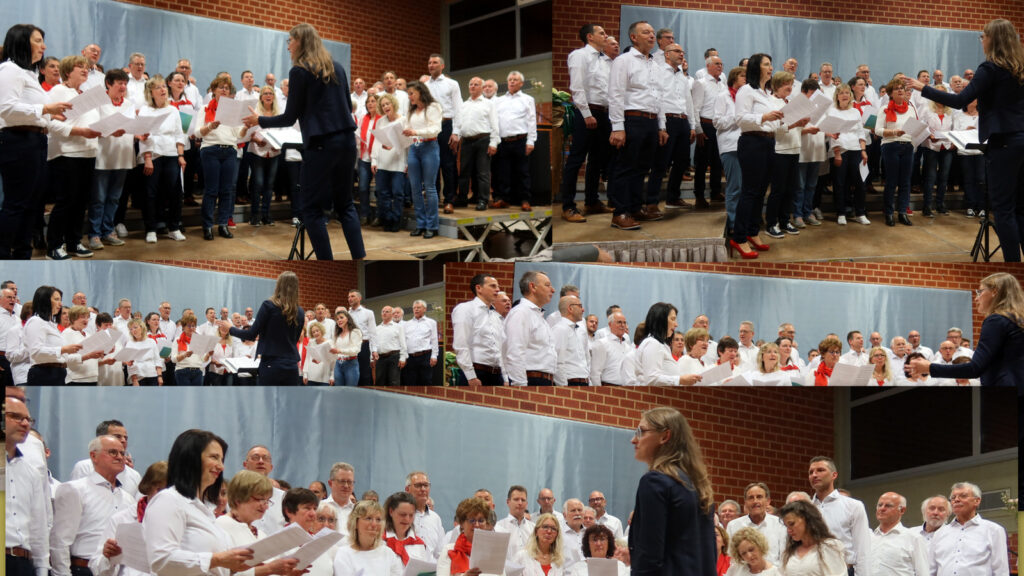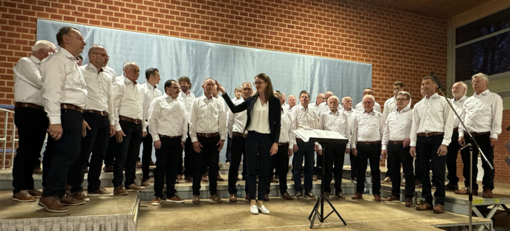 Als sich dann der Männerchor zusammen mit dem Projektchor auf der Bühne platzierte, ging ein Raunen durch die Reihen der Zuhörerinnen und Zuhörer. Mit ihren Liedvorträgen „Und wenn das Schicksal es will“ sowie „ Altes Fieber“ eroberten die Sänger durch ihre stimmkräftige, durchaus harmonische Gesangsdarbietung die Herzen aller Anwesenden. Die Klavierbegleitung hatte auf bewährte, professionelle Art und Weise Verena Westhäußer übernommen.