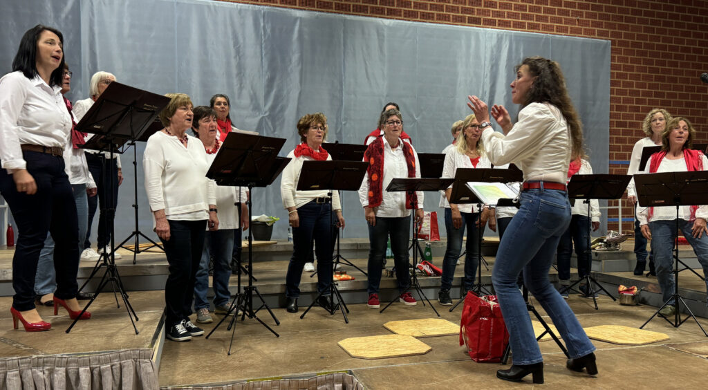 Unter der Gesamtleitung von Chorleiterin Katrin Reichle, die ihre 42 Sänger des MCH und dazu 20 Sänger des Projektchors intensiv auf dieses Jahreskonzert vorbereitet hatte, war das abwechslungsreiche Programm zusammengestellt gestellt worden. Dazu hatte sie auch die Fäden zum Frauenchor aus Alberweiler geknüpft. Katrin war Garantin eines allseits gelungenen, großartigen Konzerts und wurde am Schluss mit riesigem Applaus geradezu überhäuft. Vom Chor erhielt sie ein Geschenk (Bild).