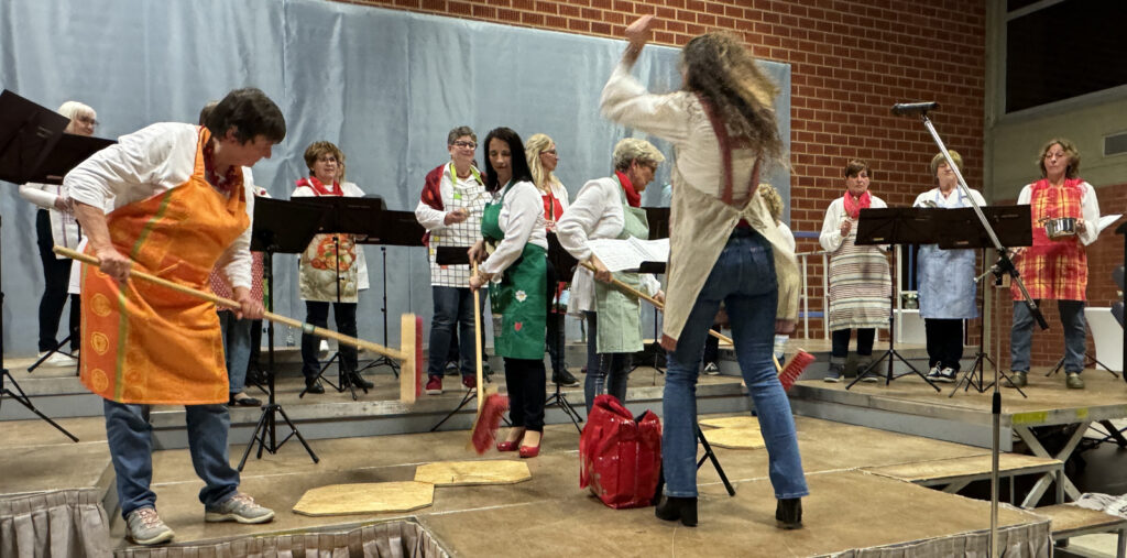 Der Frauenchor „Li(e)dschatten“ bei einem kabarettistischen Beitrag.