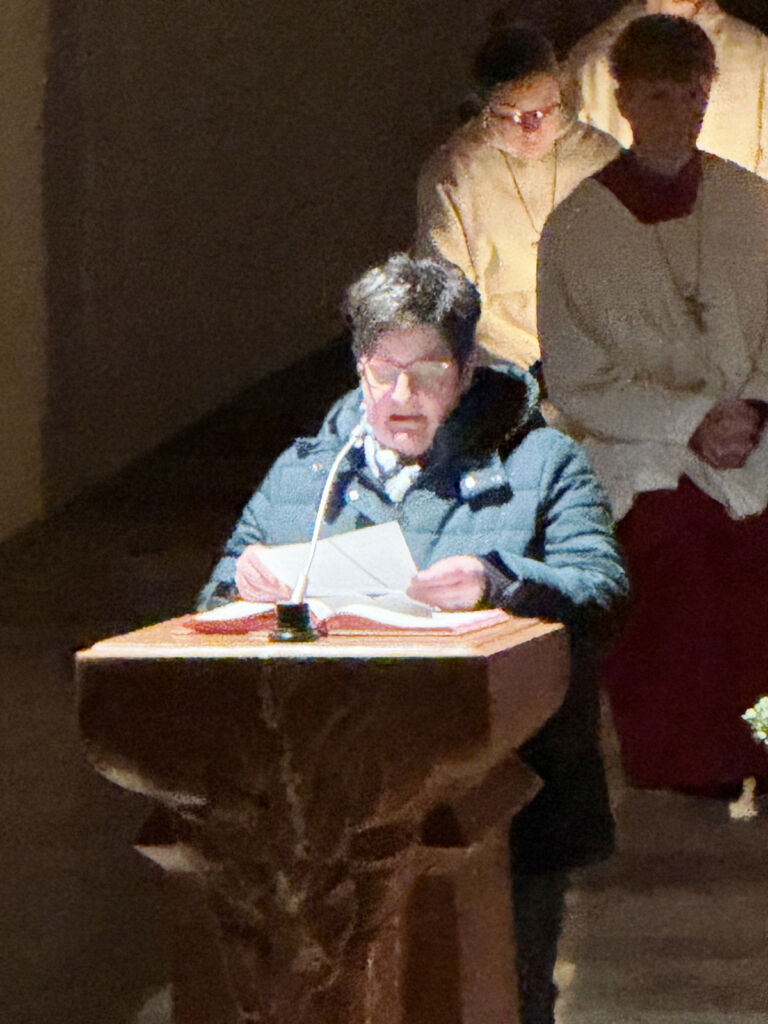 Aktuelle Bezüge zu Verheißung, Hoffnung, Zuversicht und Vertrauen wurden auch von Lektorinnen und Lektoren der Kirchengemeinde beim Wortgottesdienst vorgetragen. Verstärkt wurden diese Lesungen durch die Predigtworte von Diakon David Bösl.