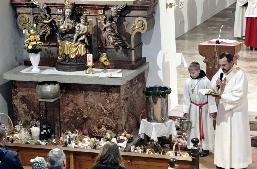 Dann zum Gloria, als das Gotteshaus hell erleuchtet wurde, zog sie alle Register, um mit vollen Orgelklängen die Auferstehung freudvoll musikalisch zu bekunden. Die Segnung der Osterspeisen erfolgte am Ende des Gottesdienstes.