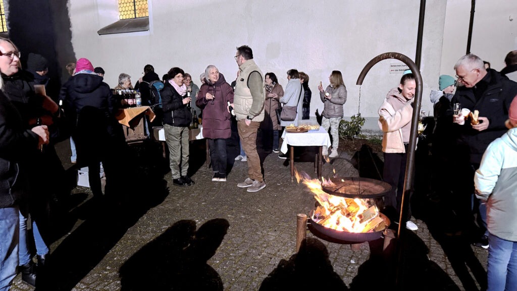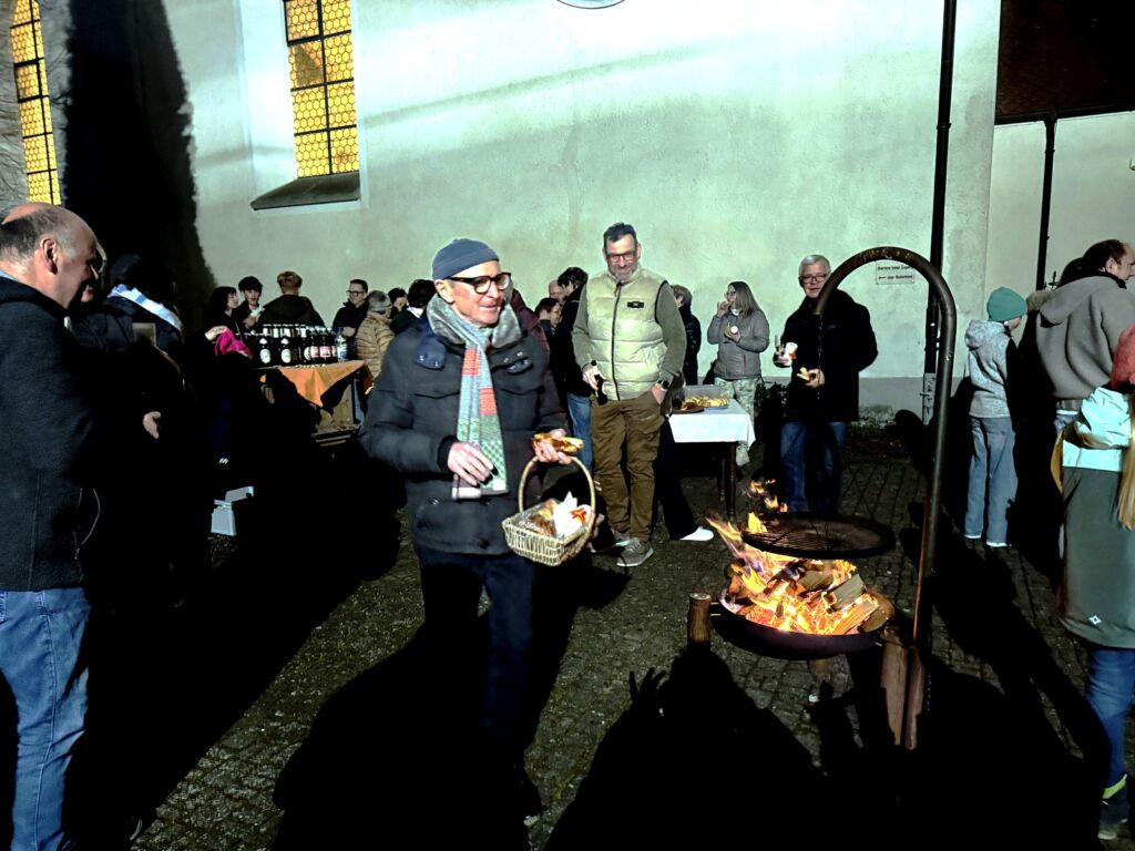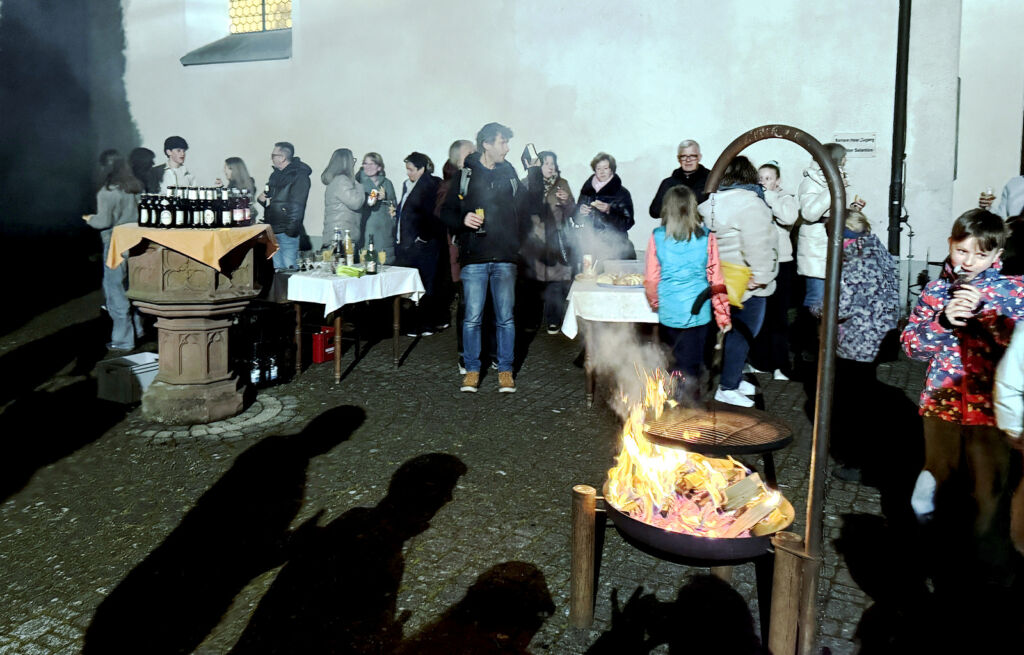 Am Schluss des Gottesdienstes bedankte sich Pater Hubert Vogel bei allen, die auf irgendeine Weise diese gelungene Osternachtfeier mitgestaltet hatten. Danach waren all die Gekommenen zu einem Stehempfang im Freien eingeladen worden. Mitglieder des Kirchengemeinderats und weitere Helferinnen und Helfer hatten Getränke und gespendetes Gebäck bereitgestellt. Das Angebot wurde gerne angenommen und allseits mit viel Lob bedacht.
