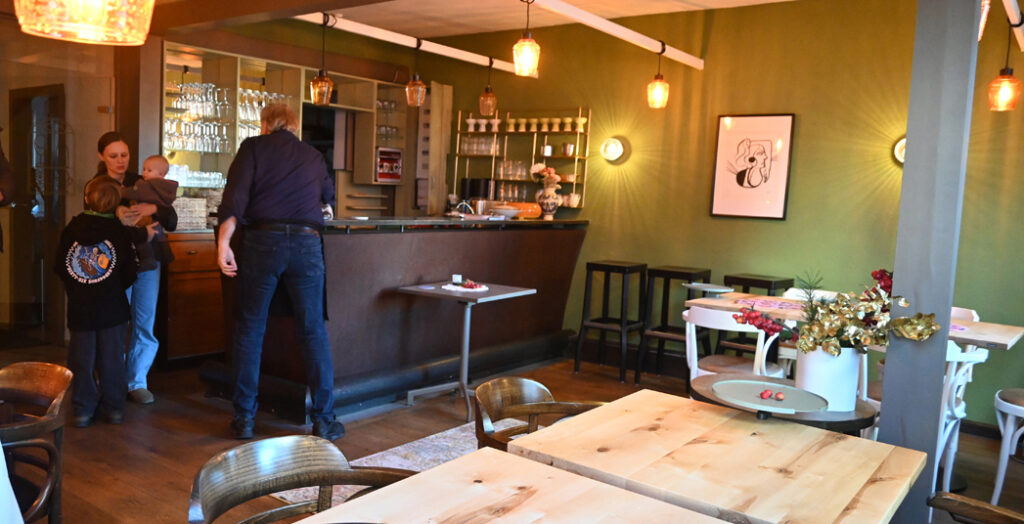 Die Barzcyk-Nüssles sind laut eigenem Bekunden allesamt begeisterte Köche und an dieser Leidenschaft wollen sie auch ihre Gäste teilhaben lassen. Das neue Lokal wird auf zwei Ebenen betrieben. Im Erdgeschoss, dem ehemaligen Ladengeschäft, ist ein Bistro entstanden. An modernen Tischen mit bequemen Sesseln können die Gäste sich laben. Zur Auswahl stehen mehrere preiswerte Tagesgerichte. Am 1. und 2. Januar bot die Speisekarte zum Beispiel Käsefondue, Semmelknödel mit Pilzgulasch, Nudeln in Roter-Bete-Soße und eine Oliven-Tapenade als Brotaufstrich an. Als Dessert gab es Affogato, eine typische italienische Kaffeespezialität aus Espresso und Vanilleeis. Zudem bieten die neuen Wirtsleute eine große Auswahl an Weinen an.