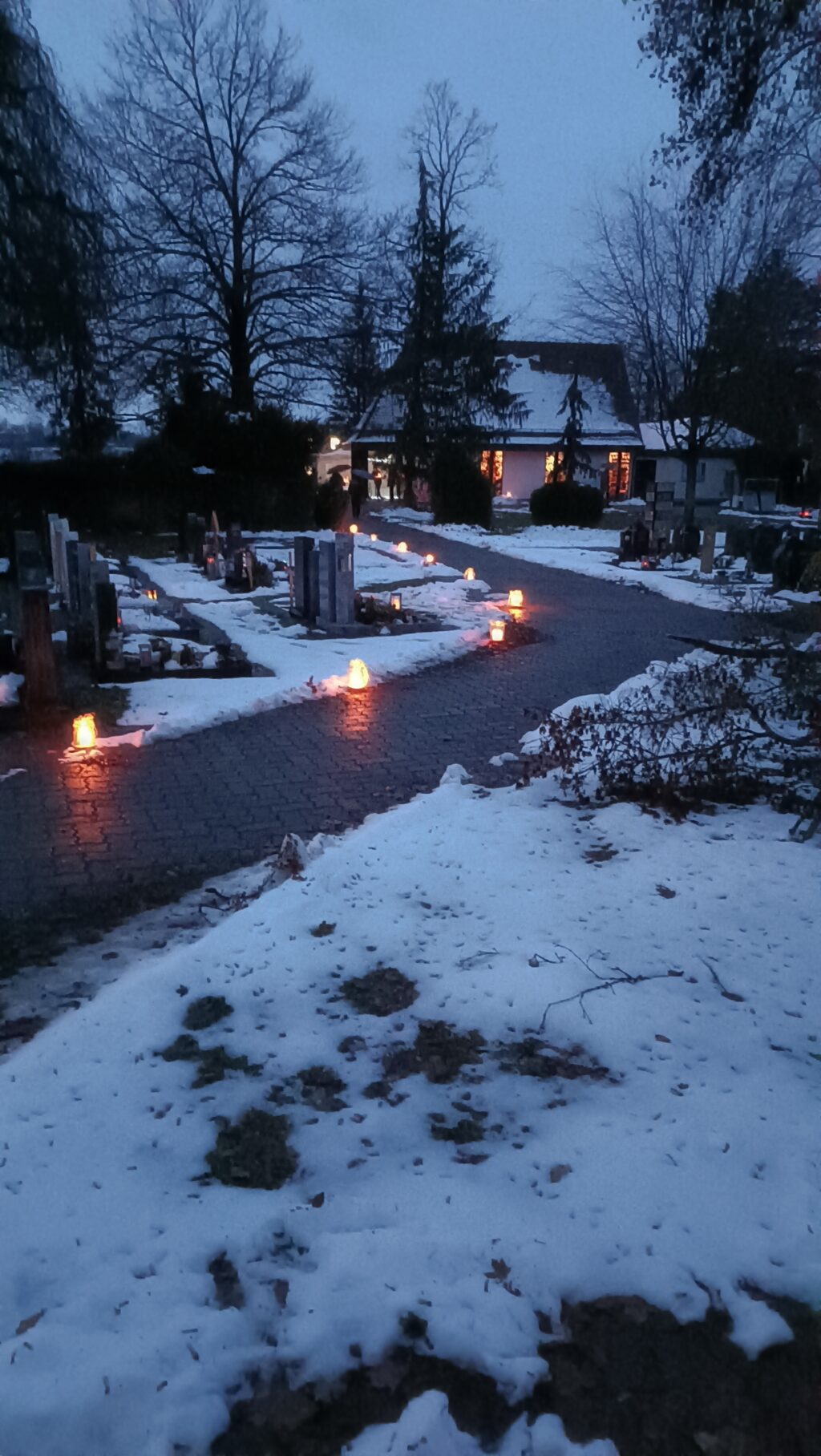 „Normalerweise sind Friedhöfe abends geschlossen, heute lädt uns dieser besondere Ort mit vielen Lichtern und Kerzen zur Begegnung ein“, mit diesem Gedanken begann Pfarrerin Birgit Oehme ihren kurzen Impuls. „Wir erwarten, der Herr wird wiederkommen, zu richten die Lebenden und die Toten“, mit diesem Wort der Bibel hoffen Christen, dass am Ende Jesus Christus die Menschheit vollenden und im Jüngsten Gericht das Gute zum Sieg führen wird.