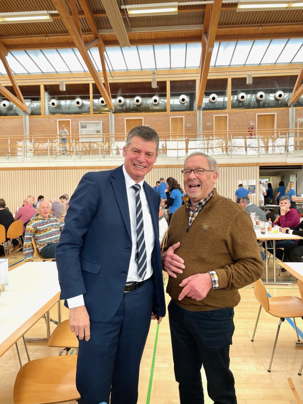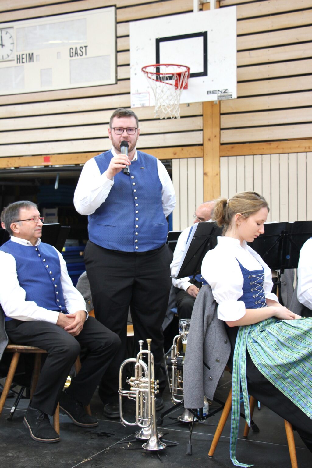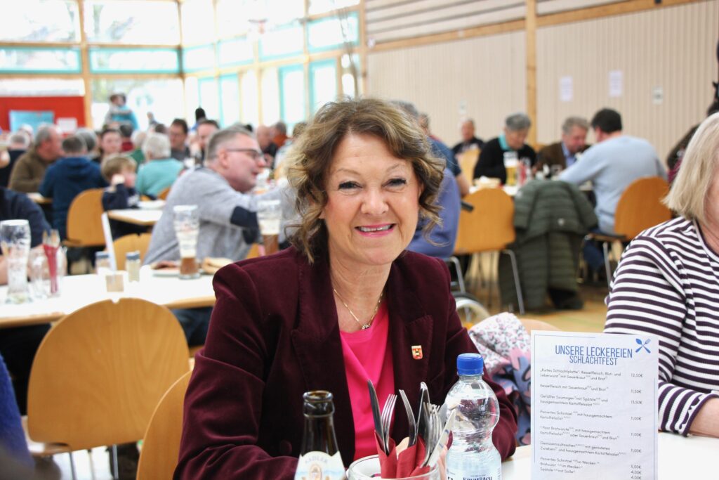 Metzgermeister Kurt Fluhr hatte mit seinem starken Team vier Schweine von Ehrenmitglied Robert Herm in Köstlichkeiten verwandelt. Auch die Metzgerei Frank hatte hier tatkräftig mit unterstützt. Und so füllte sich am Sonntag die Halle in kürzester Zeit. Bereits um 10.30 Uhr konnten die Musiker die ersten Gäste begrüßen und schon um 12.00 Uhr war jeder der über 750 Stühle belegt. Auch OBM Matthias Henne mit Familie, BM Monika Ludy und MdB Axel Müller waren unter den Gästen.