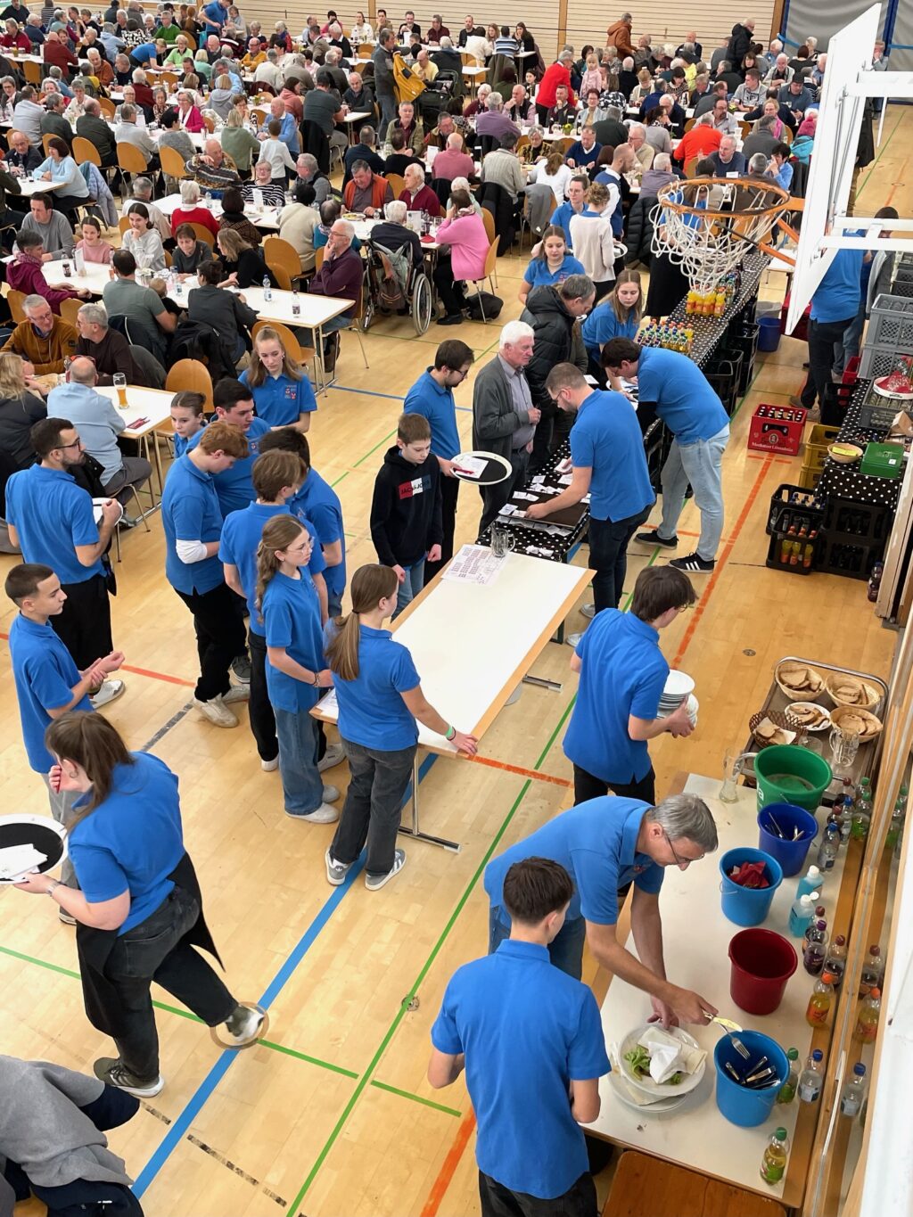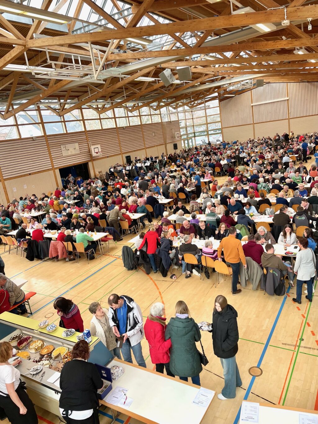 Das Team in und um die Küche, an den Theken, die Bedienungen und Essensausträger liefen buchstäblich zu Höchstleistungen auf. So konnten ca. 1.000 Mittagessen ausgegeben werden– von veg. Maultaschen, Schnitzel, Saumagen und die reichhaltige Schlachtplatte. Nicht zu vergessen auch die mit viel Liebe gebackenen Kuchen und Torten – unter den 50 Stück fiel die Auswahl unglaublich schwer.