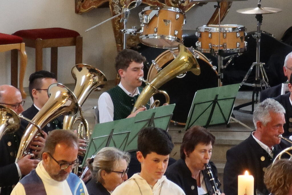 Die Musikantinnen und Musikanten umrahmten den Gottesdienst mit Chorälen und der Begleitung des Gemeindegesangs besonders feierlich. An diesem Abend gedachte die Kirchengemeinde Haisterkirch ihres Kirchenpatrons St. Johannes Baptist. Das Fest der Geburt des Täufers wird in vielen Kirchen am 24. Juni gefeiert, also sechs Monate vor dem Heiligen Abend.