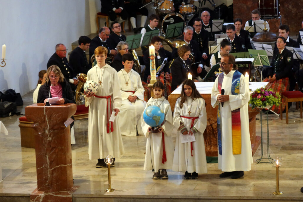 In den Fürbitten, die ganz auf die Jetztzeit – auch mit Bezügen zur Fußball-Europameisterschaft – abgestimmt waren, wurde um Gottes Hilfe und Erbarmen gebeten.