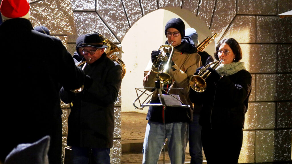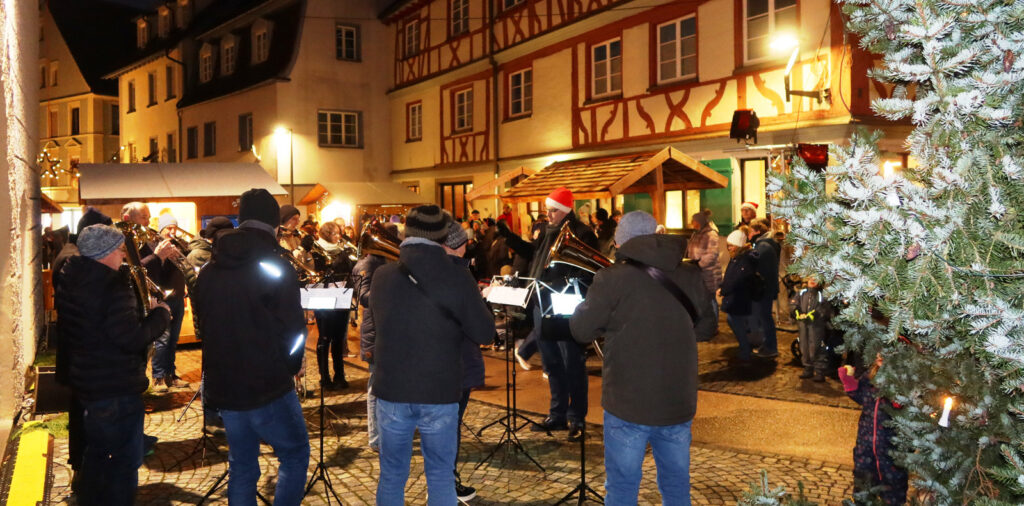 Dieses Jahr erfreute ein 12-köpfiges Ensemble der Musikkapelle Haisterkirch am Vorabend des 3. Adventssonntags eine große Zuhörerschar mit blasmusikalischen, adventlichen und weihnachtlichen Klängen. Dirigent Klaus Wachter, der selbst kräftig mitsang, hatte eine wahres Potpourri an jahreszeitlich passenden Musikstücken ausgewählt. Der Beifall war den Blasmusizierenden gewiss, zumal auch aus dem Haistergau viele Zuhörerinnen und Zuhörer extra gekommen waren.