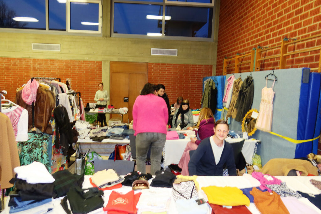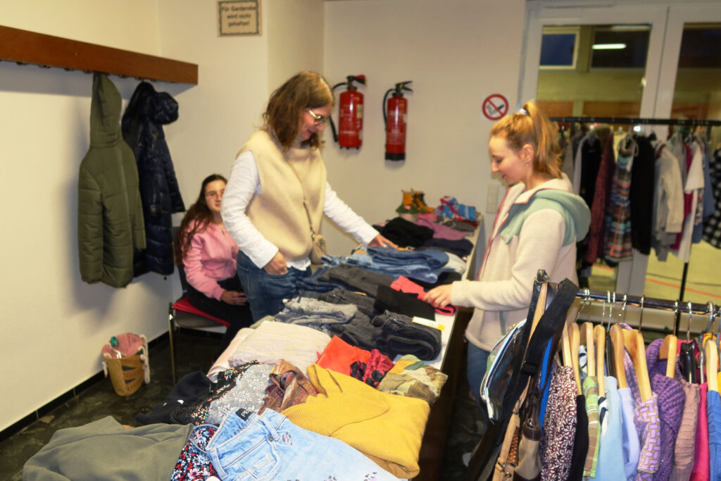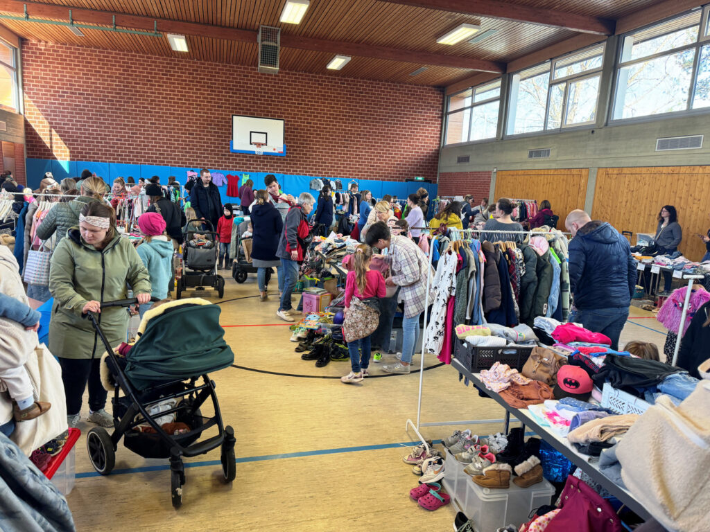 Auch dieses Mal war an beiden Tagen das Angebot an Secondhand-Kleidungstücken vom Fuß- bis zum Kopfbereich überwältigend. Wie gewohnt hatten Anbieterinnen, an insgesamt 44 Tischen ihre gebrauchten, zum Teil neuen Artikel, angeboten zu durchaus günstigen Preisen. Die Nachfrage nach Verkaufsplätzen war größer, als vergeben werden konnten. Der Gesamterlös, auch vom Verkauf von Getränken, Butterbrezeln und gespendeten Kuchen, wird wieder für soziale Zwecke am Ort verwendet werden. Interessierte Besucherinnen und Schnäppchenliebhaberinnen kamen voll auf ihre Kosten.
