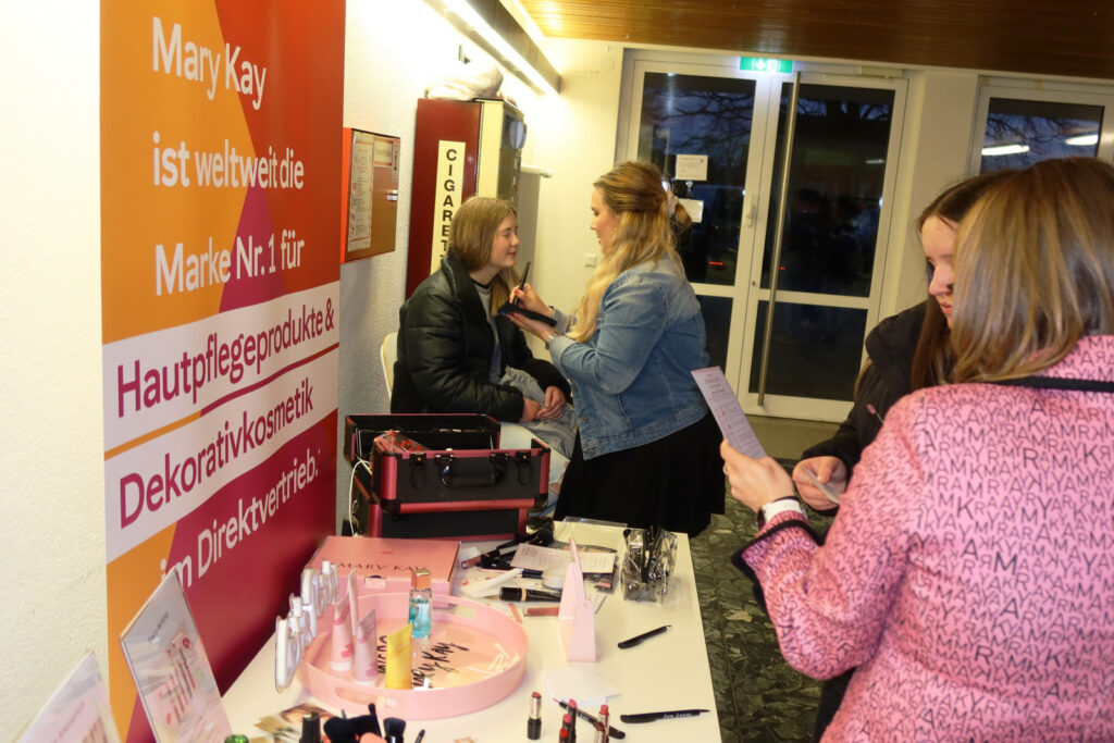 Überall konnte nach Artikeln gestöbert werden. Dieses Mal wurde sogar an einem Tisch im Foyer kostenloses Anbringen von Makeup angeboten. Aufgefallen ist erneut, wie freundlich die Besucherinnen miteinander umgegangen sind. Es hat allen sichtlich Spaß gemacht und fündig geworden sind Käuferinnen und Verkäuferinnen.
