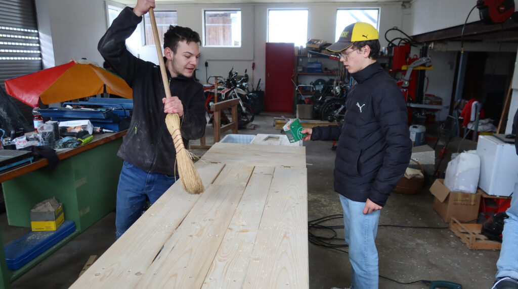 Die Minis der Kirchengemeinde Haisterkirch hatten sich ebenfalls zum Ziel gesetzt, ein Projekt in den drei Tagen fertigzustellen, das dazu dienen soll, die „Welt ein Stückchen besser zu machen“. Geplant war, einen Partytisch (Bild) zu bauen, der bei verschiedensten Anlässen Menschen zusammenbringen kann und soll. Zugleich sollen Produkte der sogenannten Dritten Welt, speziell solche aus dem Weltladen Bad Waldsee, angeboten werden. Hier gilt „Fairer Handel“ als Leitmotiv.