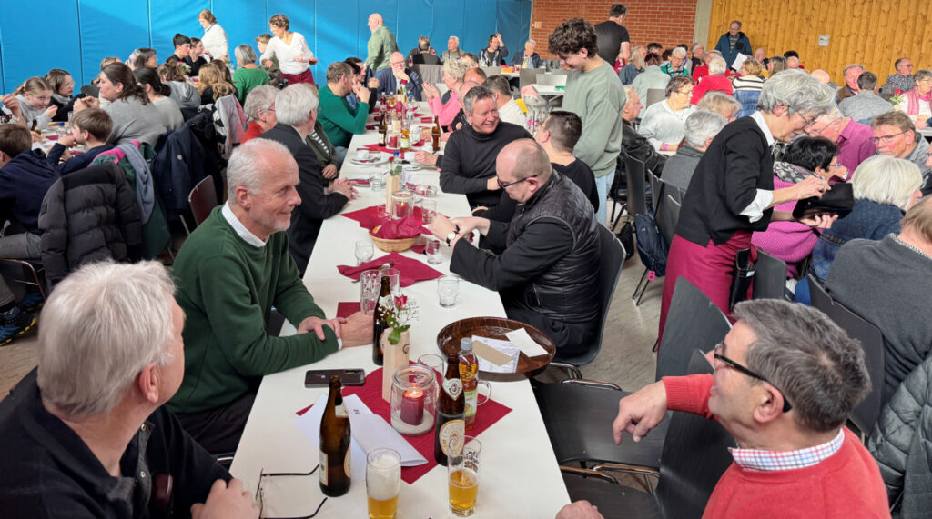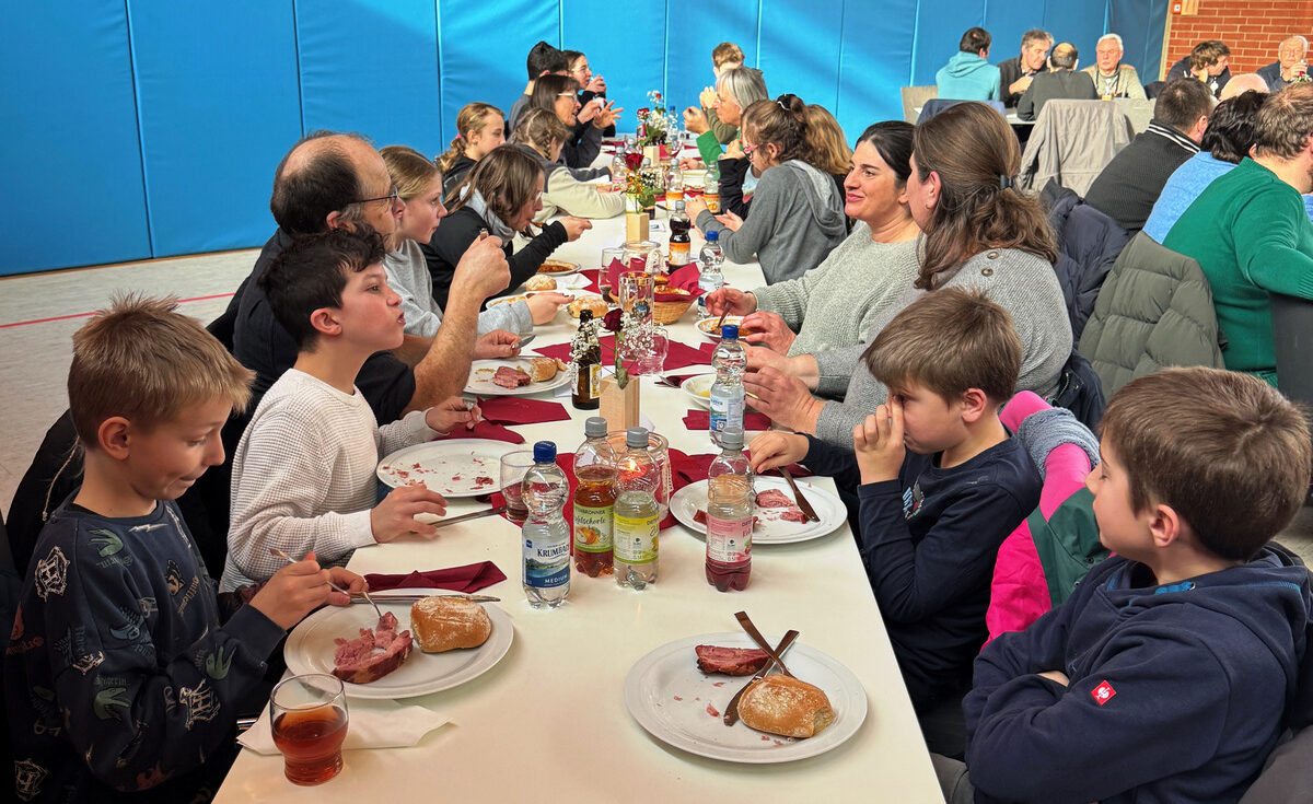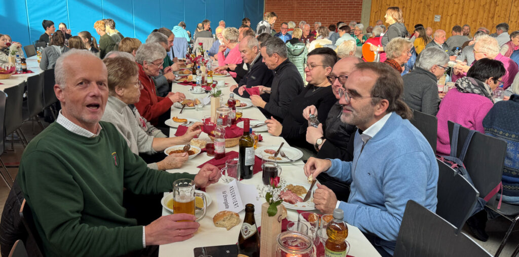 Auch dieses Mal hatten Helferinnen und Helfer ganztägig dafür Sorge getragen, dass sich Wallfahrerinnen und Wallfahrer in der Gemeindehalle mit Speisen und Getränken sowie Kaffee und Kuchen stärken konnten. Das Serviceteam im Küchenbereich wie im Saal schaffte es zur Mittagszeit, als alle Stühle belegt waren, die etwa 250 Essensgäste rasch und freundlichst zu bewirten.