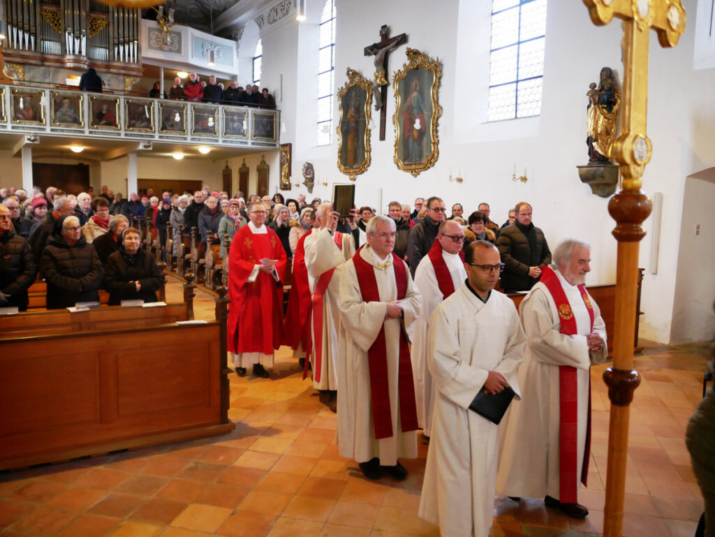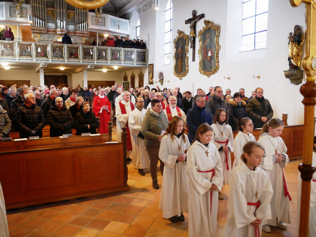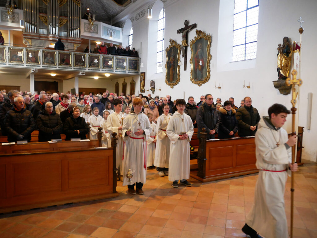 Pfarrkirche St. Johannes Baptist in Haisterkirch am 20. Januar um 9.00 Uhr: Einzug der Miinistranten und Geistlichen.