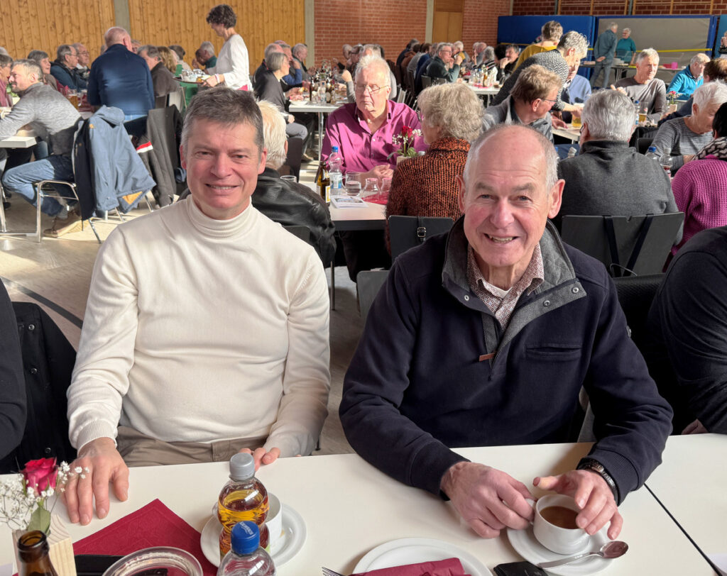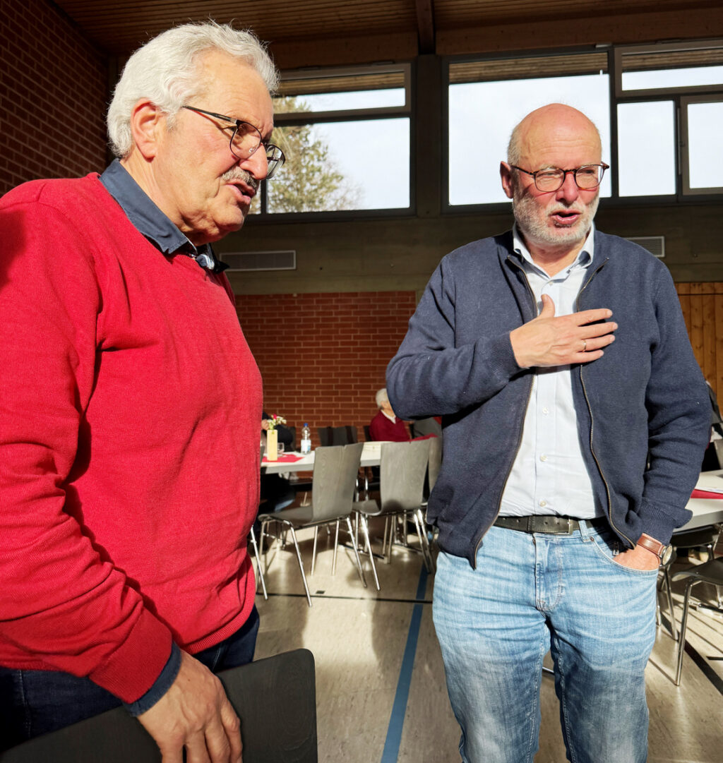 In der Gemeindehalle in Haisterkirch waren zur Mittagszeit alle Plätze belegt. Unser Bild zeigt den Ehrentisch mit Pfarrer Werner von rechts.