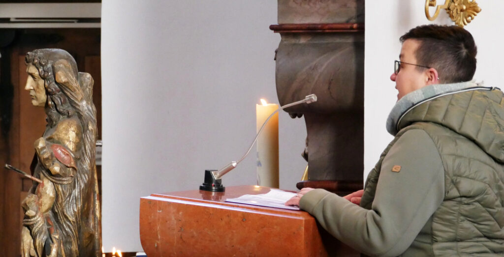 Der Vollblutmusiker Johannes Tress begleitete an der Orgel meisterlich all die passend ausgewählten Liedbeiträge für die Gottesdienstbesucher und gefiel durch feinen Gesang.