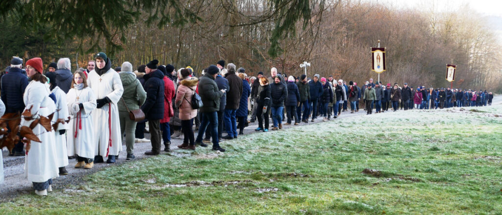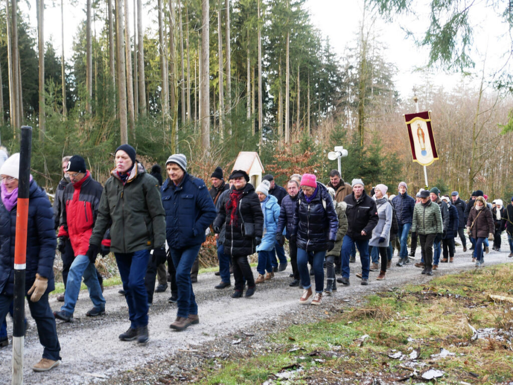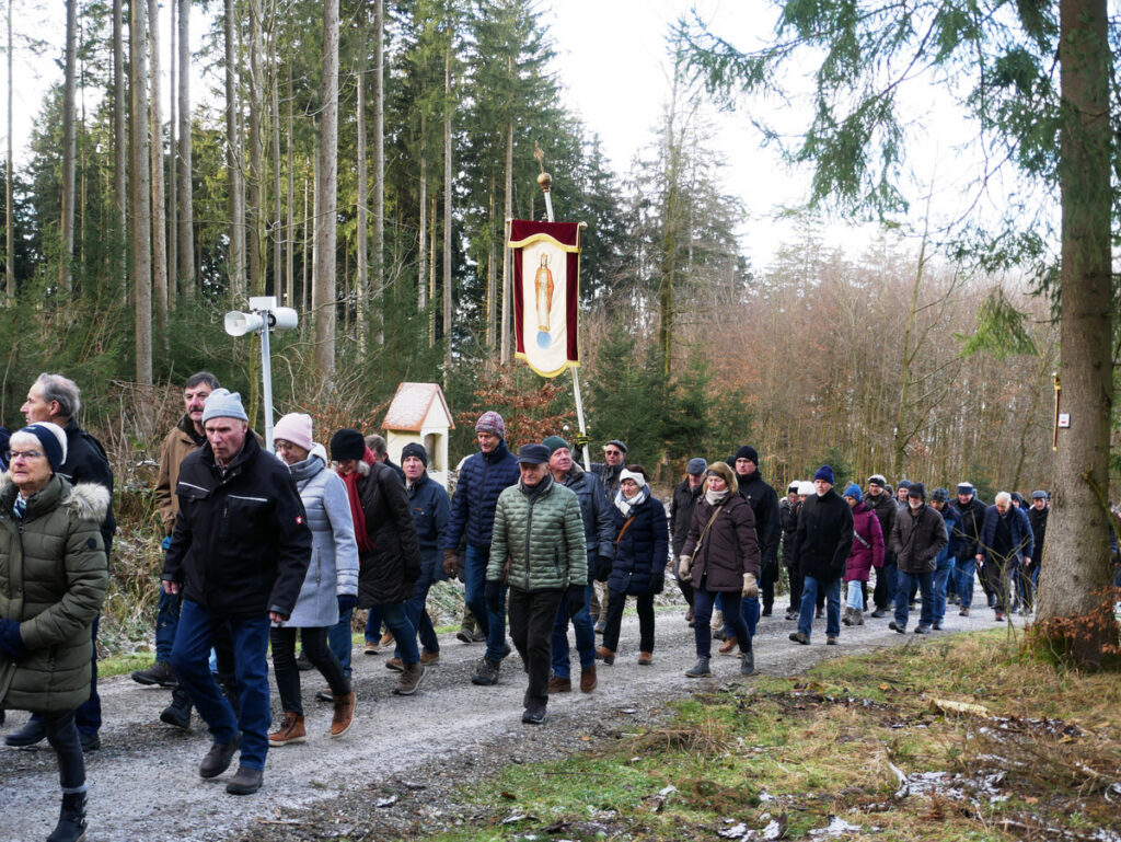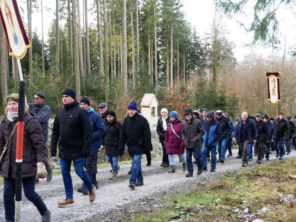 Etliche Gruppen, kleine und große, mit Wallfahrerinnen und Wallfahrern aus dem ganzen Nahbereich, begaben sich auf die Wege, die aus vier Himmelsrichtungen zur Kapelle führen, um dort zu beten und um den Beistand des Heiligen bei Gott zu erbitten.