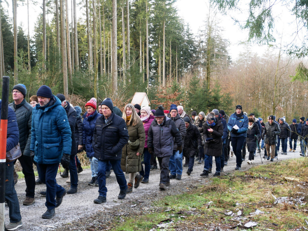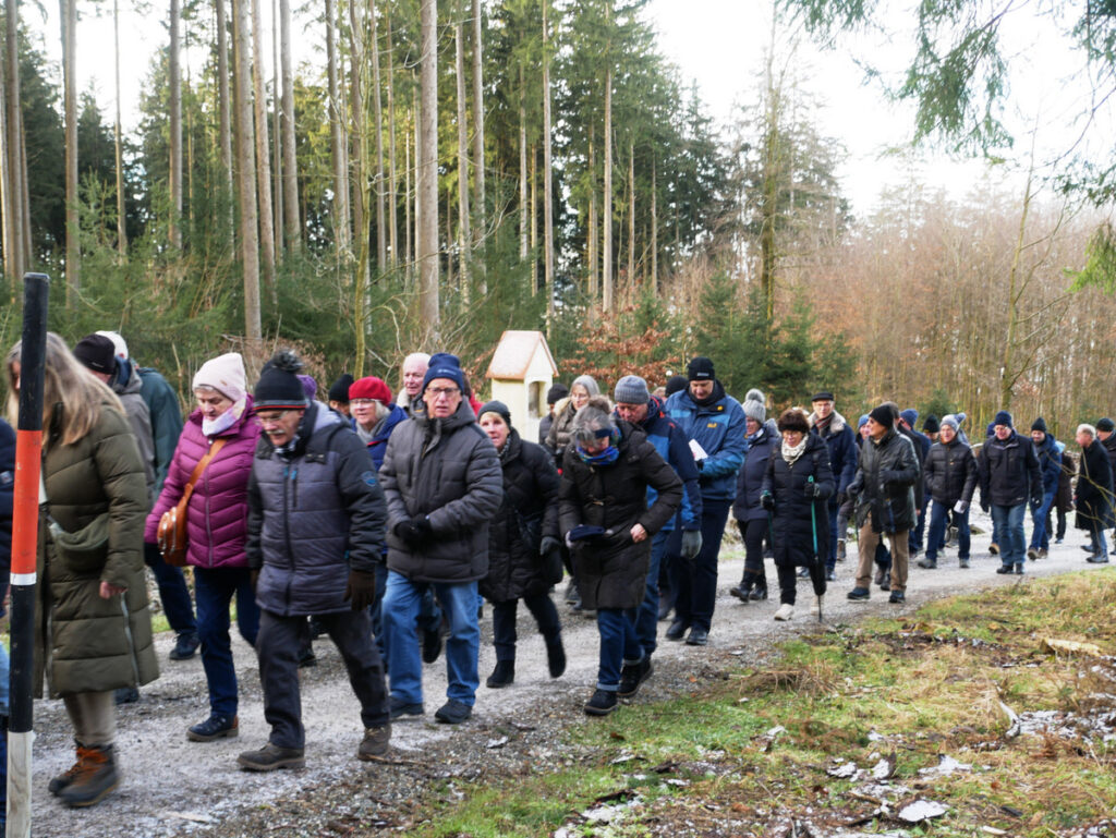 Beispielhaft sei eine siebenköpfige Männergruppe aus Bergatreute genannt, die sich schon um 7.00 Uhr zu Fuß von ihrem Heimatort Bergatreute nach Haisterkirch aufgemacht hatte, um rechtzeitig dem Festgottesdienst um 9.00 Uhr beiwohnen zu können. Dann schloss sich die Gruppe der Prozession an, immer bergauf zur Kapelle St. Sebastian und dazu betend und singend, wie all die Wallfahrtteilnehmenden. Die Namen der sieben Bergatreuter seien genannt. Es waren: Josef Forderer, Theo Hepp, Hans Hoh, Manfred Hoh, Rainer Hoh, Karl Klawitter und Franz Josef Teufel.