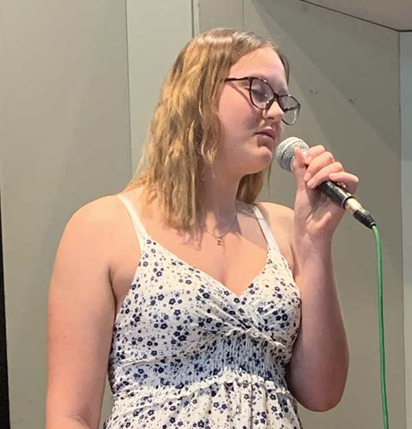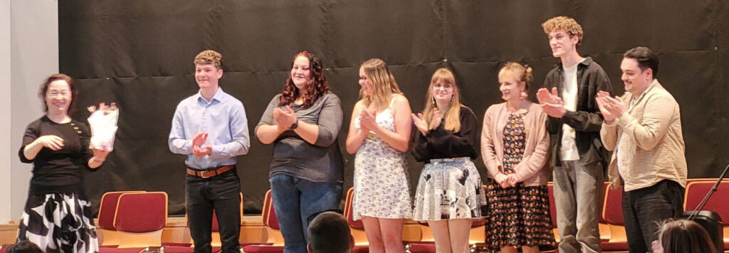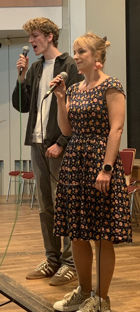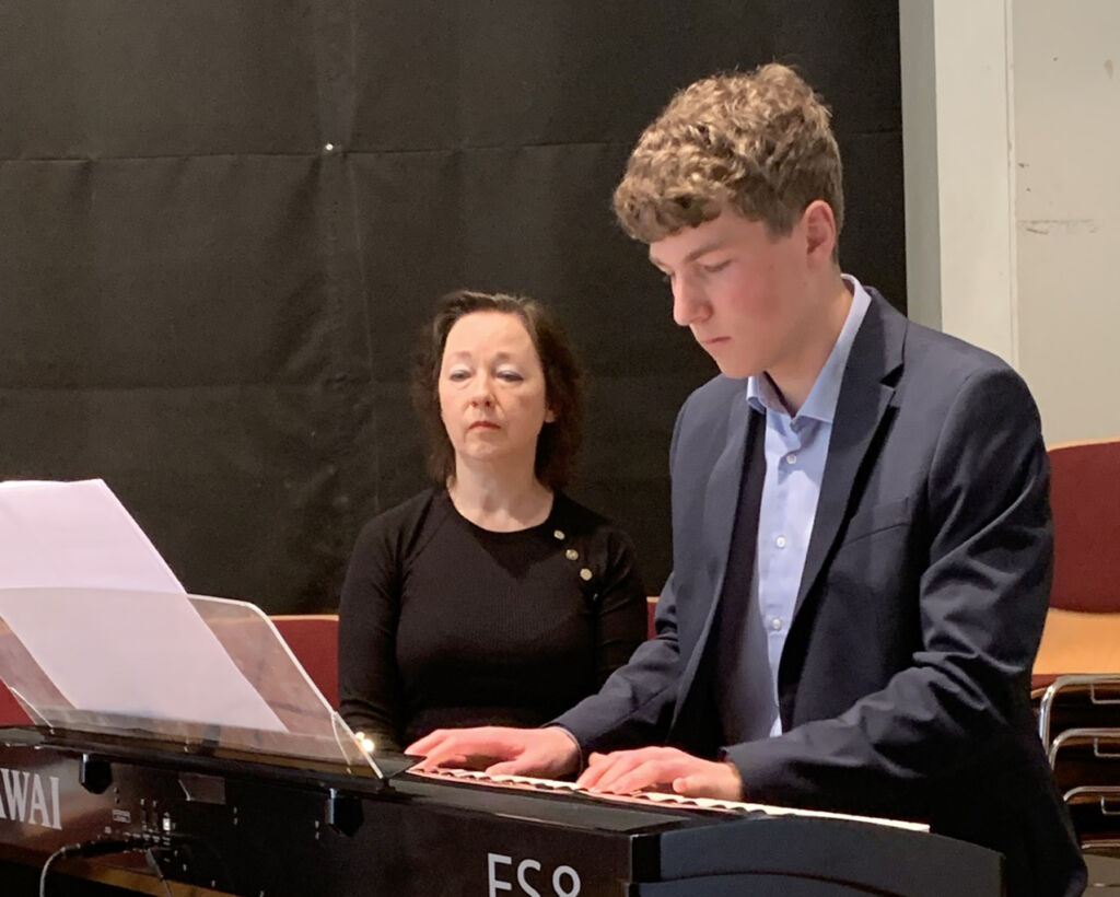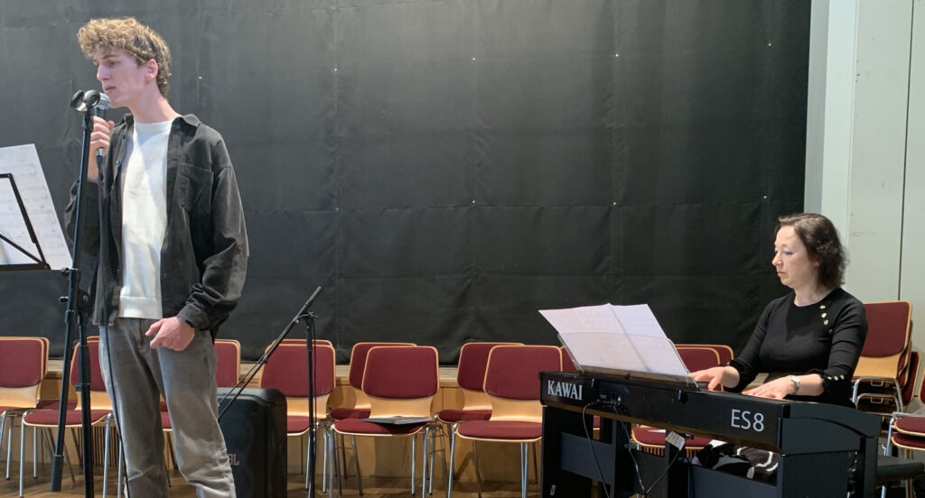Die Gesangsklasse der Jugendmusikschule bot unter Leitung von Elena Becker-Schramm ein größeres Konzert mit den jungen Künstlern Nick Sonntag (Klavier), Martha Geiger, Georgios Sidiropoulos, Benedikt Rundel, Celine Nadig, Lia Lemmle und Lena Lemmle (alle Gesang). Nick Sonntag spielte perfekt ‚In un altra vita‘ (L. Enaudi) und ‚Pulse‘ (Tony Ann). Alle Sänger traten einzeln und in unterschiedlichen Duetten auf. Das Duett Martha Geiger/Georgios Sidiropoulos trug die Titel ‚Shallow‘ und ‚Die with a smile‘ vor das Duett Martha Geiger/Benedkt Rundel ‚La ci darem la Mano (Mozart), das Duett Lia Lemmle/Lena Lemmle die Titel ‚The Rose‘ und ‚The Reason‘ und das Duett Lena Lemmle/Celine Nadig den Titel ‚Sign of the times‘. Alle Sängerinnen und Sänger bewiesen mal wieder ihre stimmliche Brillanz!