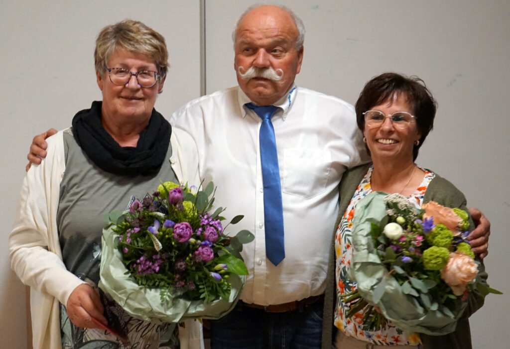 Verlassen nach langjähriger Mitarbeit den Ausschuss: Klara Dürr (links) und Jutta Fluhr (rechts) zusammen mit 1. Vorstand Gerhard Frick. Foto: KN