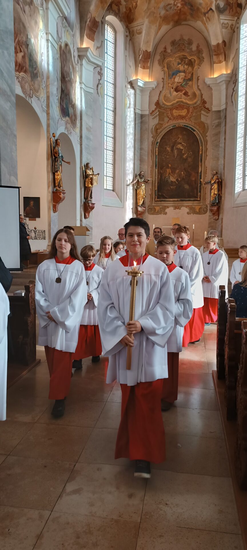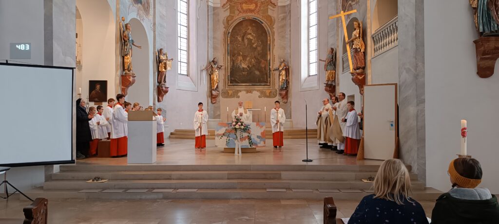 Reute – Anstatt eines Festpredigers wie in den früheren Jahren gestaltete Pfarrer Stefan Werner mit den Kommunionkindern des nächsten Jahres den Festgottesdienst zu Ehren der Seligen Guten Beth in der Pfarr- und Wallfahrtskirche St. Peter und Paul in Reute. Im Religionsunterricht der Durlesbachschule Reute hatte sich Ilona Müller aus Atzenreute der Seligen aus dem 15. Jahrhundert besonders angenommen.