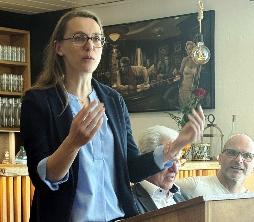 Chorleiterin Katrin Reichle, die seit 15 Jahren nicht nur als Dirigentin segensreich den Männerchor führt, sondern die zugleich auch die Nachwuchsgewinnung managt, durfte an diesem Vormittag Lobeshymnen von verschiedenster Seite entgegennehmen. Ein Superlativ lautete: „Du bist die beste Dirigentin, die es gibt.“ Der Verjüngung der Sangesschar, die einen Altersschnitt von 60,5 Jahren aufweist, widmet sie sich recht erfolgreich.