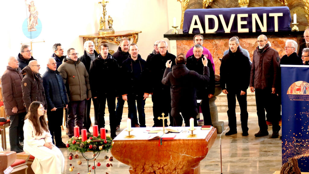 Pfarrer Stefan Werner, als Zelebrant der Gottesdienstfeier, freute sich über die hohe Anzahl von Gottesdienstbesuchern. Mit ein Grund für den großen Zuspruch war auch der Auftritt des Männerchors Haisterkirch, der mit seiner auf die Adventszeit passend zugeschnittenen Liederauswahl die Herzen der Gläubigen auf das Fest Christi Geburt sinngebend einzustimmen verstand.