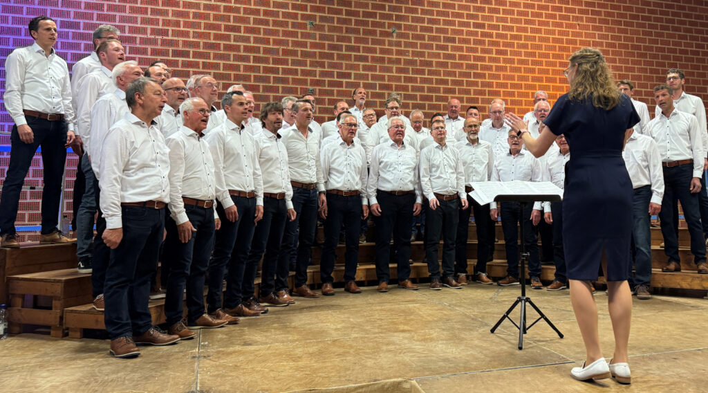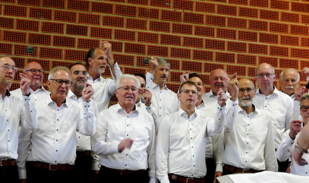 Gekommen war eine erfreulich große Besucherschar aus nah und fern. Die Gäste, die vom Vorstandsvorsitzenden Werner Schach herzlich begrüßt wurden, genossen die Gesangskünste der stimmgewaltigen Männer von Chorleiterin Katrin Reichle. Ihr ist es in intensiven Proben seit Jahresbeginn gelungen, insgesamt 56 sangesfreudige Männer – davon 14 Projektsänger – für dieses besondere Sangesereignis zu begeistern.