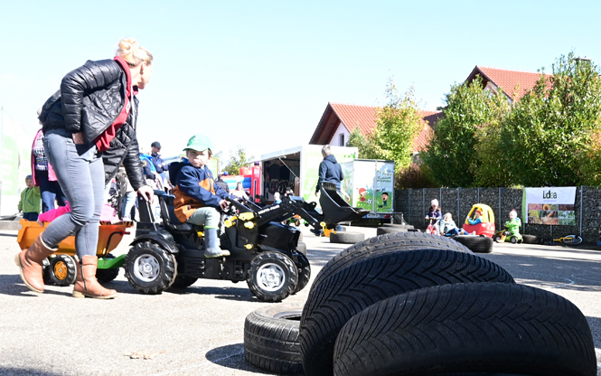Zum fröhlichen Familientag gehörte natürlich auch eine 1a-Versorgung mit leckerem Essen vom Lauchbraten über die berühmte Rote im Wecken bis zu knusprigen Pommes. Hüpfburg, ein Geschicklichkeitsparcours für die kleinen Landwirte und die eine und andere Einkaufsgelegenheit gehörten ebenfalls zum Programm.