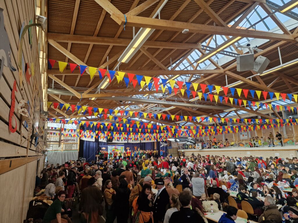 Nach dem Umzug erreichten die Feierlichkeiten in der Durlesbachhalle und im Barzelt ihren Höhepunkt. Dort bot sich allen Besuchern die Gelegenheit, gemeinsam zu feiern und die närrische Stimmung zu genießen. In der großen Halle sorgten eindrucksvolle Musikdarbietungen und mitreißende Tanzaufführungen für Begeisterung. Auf der großen Bühne konnten auch Lumpenkapellen ihr Können zeigen. Die Vielfalt und Qualität der Beiträge beeindruckte das Publikum nachhaltig.