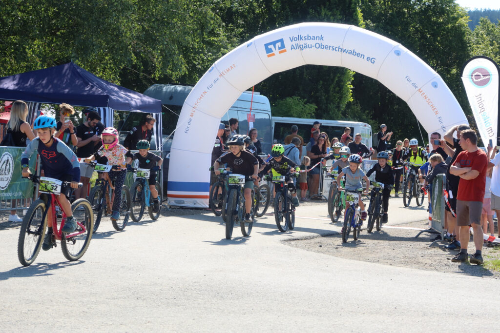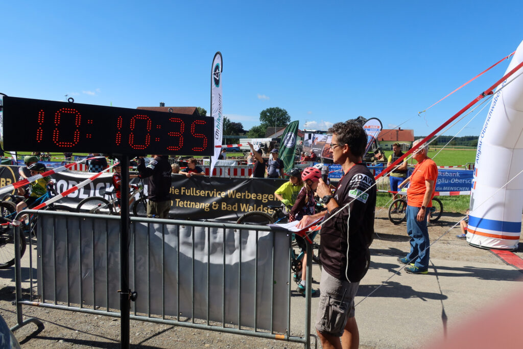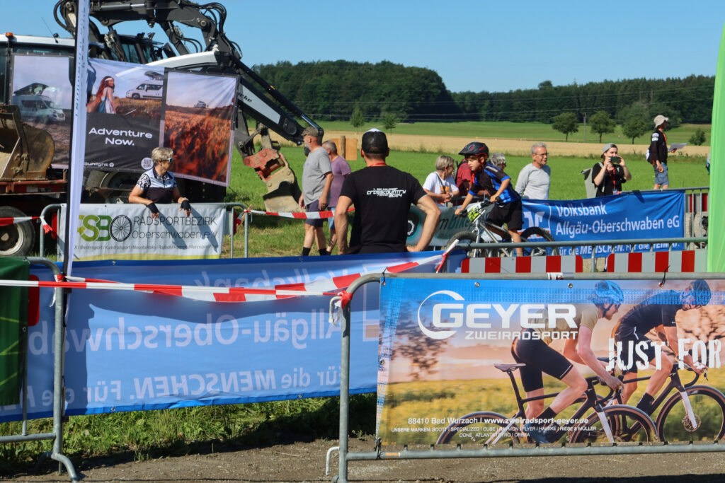 Rund um Start und Ziel waren etliche Werbetafeln aufgestellt, die aufzeigten, welche Unternehmen (Sponsoren) das Ganze unterstützen. Hauptsponsor ist die Volksbank Allgäu-Oberschwaben. Extra zum Start des Hauptrennens um 12.00 Uhr war Regionalmarktdirektor Anton Sproll von der VBAO gekommen. Er konnte sich davon überzeugen, dass bei dem sonnigen Wetter wiederum Cross-Country-Begeisterte aus ganz Oberschwaben und auch weiter entfernten Regionen gekommen waren.
