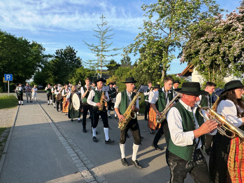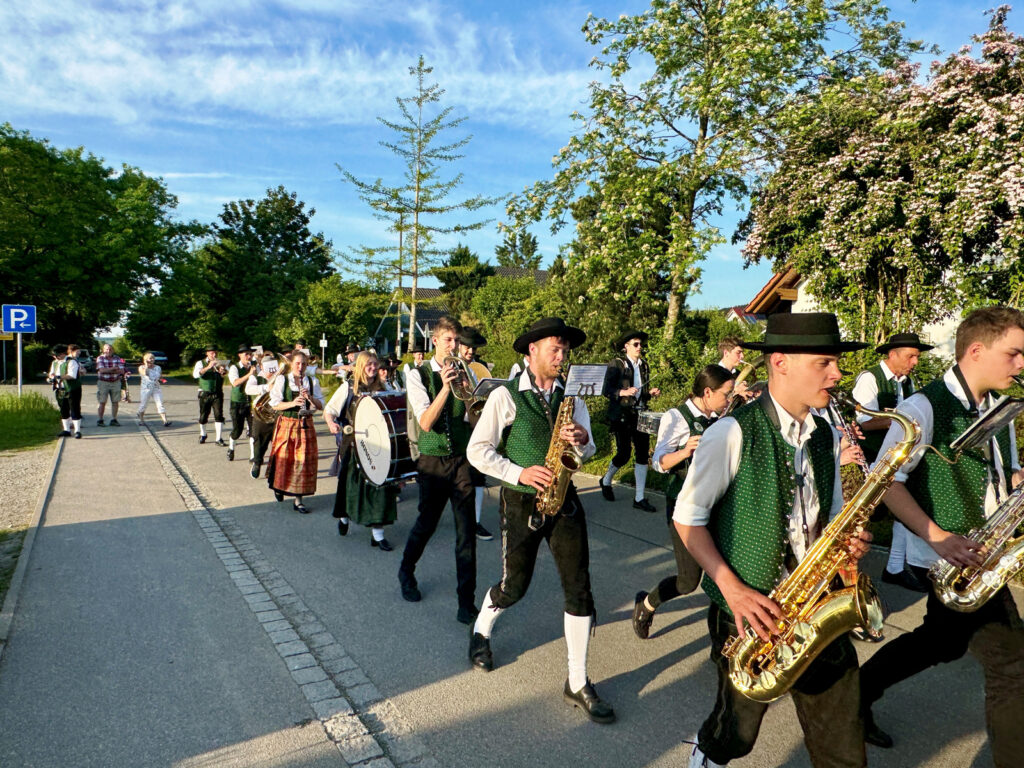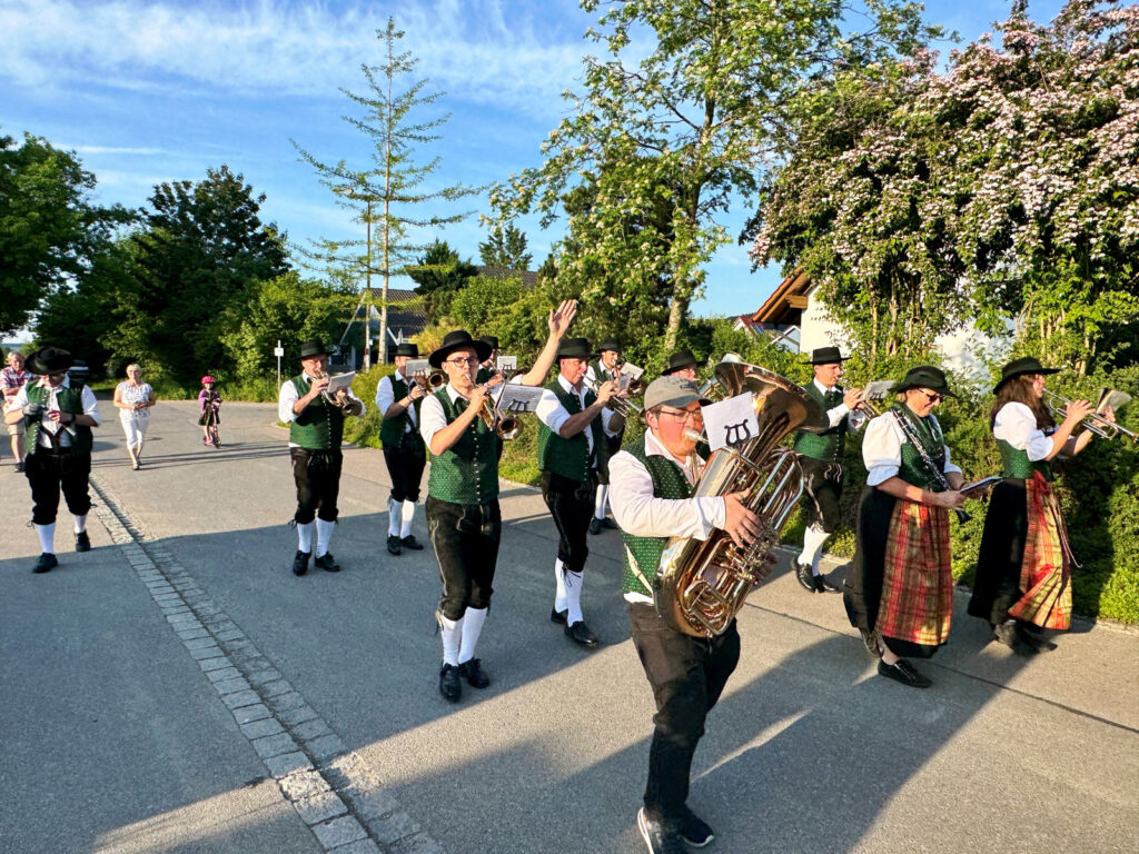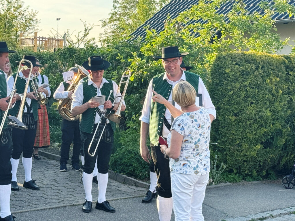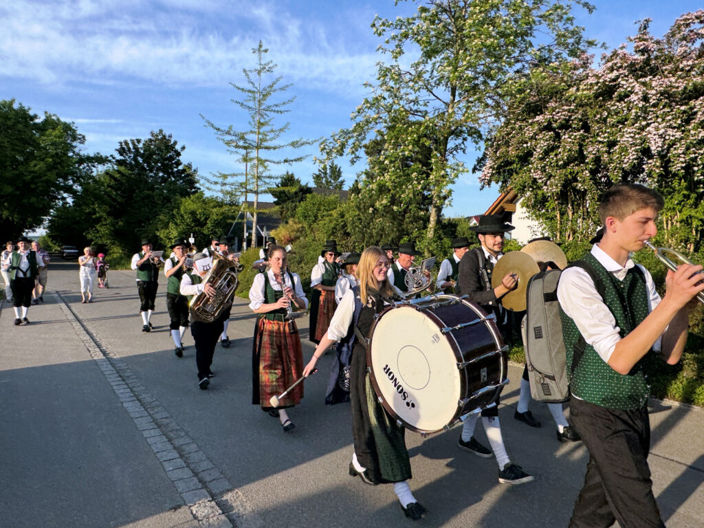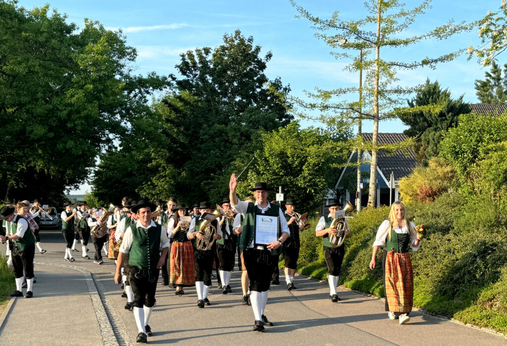 Haisterkirch – Am Abend des Muttertags (12. Mai ) lockten blasmusikalische Klänge so manche Einwohner in der Ortschaftsmitte von Haisterkirch aus ihren Wohnungen und die staunten nicht schlecht, als da die Haisterkircher Musikkapelle in großer Besetzung und schmucker Tracht vorbeimarschierte. Mit dem Muttertag hatte dies wohl nichts zu tun, denn dies wäre ja eher morgens erfolgt.