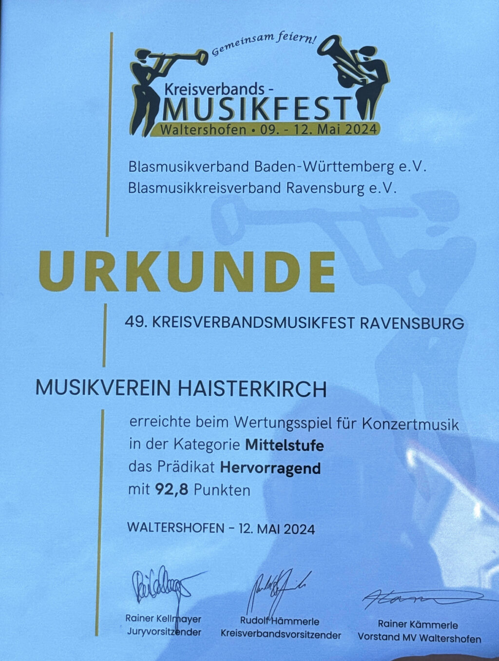 Musikkapelle Haisterkirch mit „Hervorragend“ bewertet