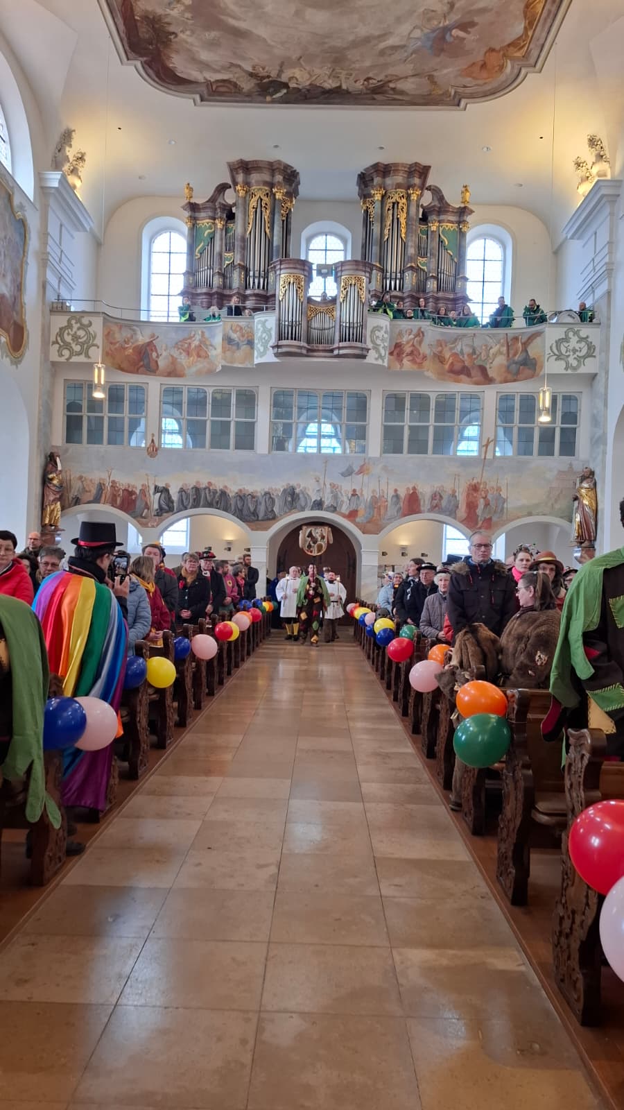 Für einen weiteren Gänsehautmoment sorgten die Schalmeien, die vom Chorraum aus erklangen und den Kirchenraum klangvoll erfüllten. Kommunion und Musik rundeten die Narrenmesse würdevoll und zugleich närrisch ab. So blieb diese Narrenmesse allen Beteiligten als ein fröhlicher, gemeinschaftlicher und herzlicher Start in den Fasnetssonntag in bester Erinnerung.