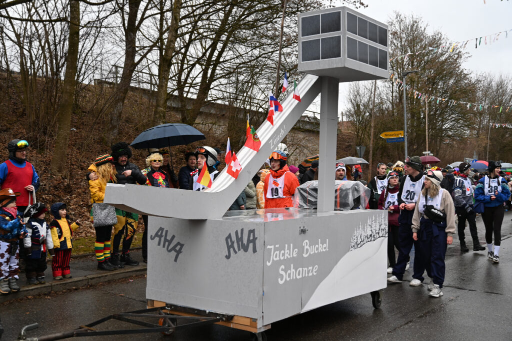 Olympia als Motto: Das ließ die Urbacher Narren nicht ruhen, ihren Jäckle-Buckel mit einer Schanze auszustatten. Foto: Erwin Linder