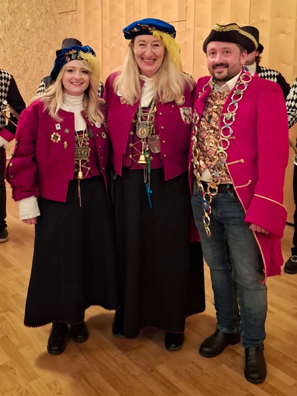 Im Saal übernahm der Fanfarenzug das Kommando und füllte den Raum mit kräftigen Klängen. Danach folgte der traditionelle Machtwechsel: Achim Strobel wurde mit einem Hut feierlich aus dem Amt entstrobelt, während die Ortsvorsteherkette an Gildemeisterin Claudia Schmidt überging. Die Zigeunermusik spielte, die ersten Arme hakten sich ein, und die Schunkelrunde machte klar: Jetzt regieren die Narren!