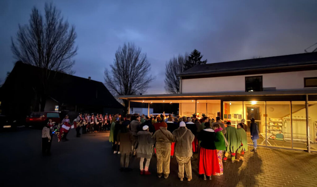 Reute / Gaisbeuren – Das Narrenrechtabholen am Freitagabend (6.2.) begann schon vor dem Dorfgemeinschaftshaus in Gaisbeuren mit einem Bild, das man so schnell nicht vergisst: Das Zigeunervölkle war als Fischer verkleidet angerückt – mit Netzen, Mützen und Gummistiefeln, als wollten sie die Schussen persönlich leerfischen. Vor der Tür drängten sich die Narren, bis schließlich Oberortsvorsteher Achim Strobel öffnete. Doch gegen Zigeunervater Peter Knörle half kein Amtsbonus: Mit trockenem Humor und hartnäckigem Verhandlungsgeschick setzte er den Einlass durch; die Ortsverwaltung musste die närrische Flut passieren lassen.