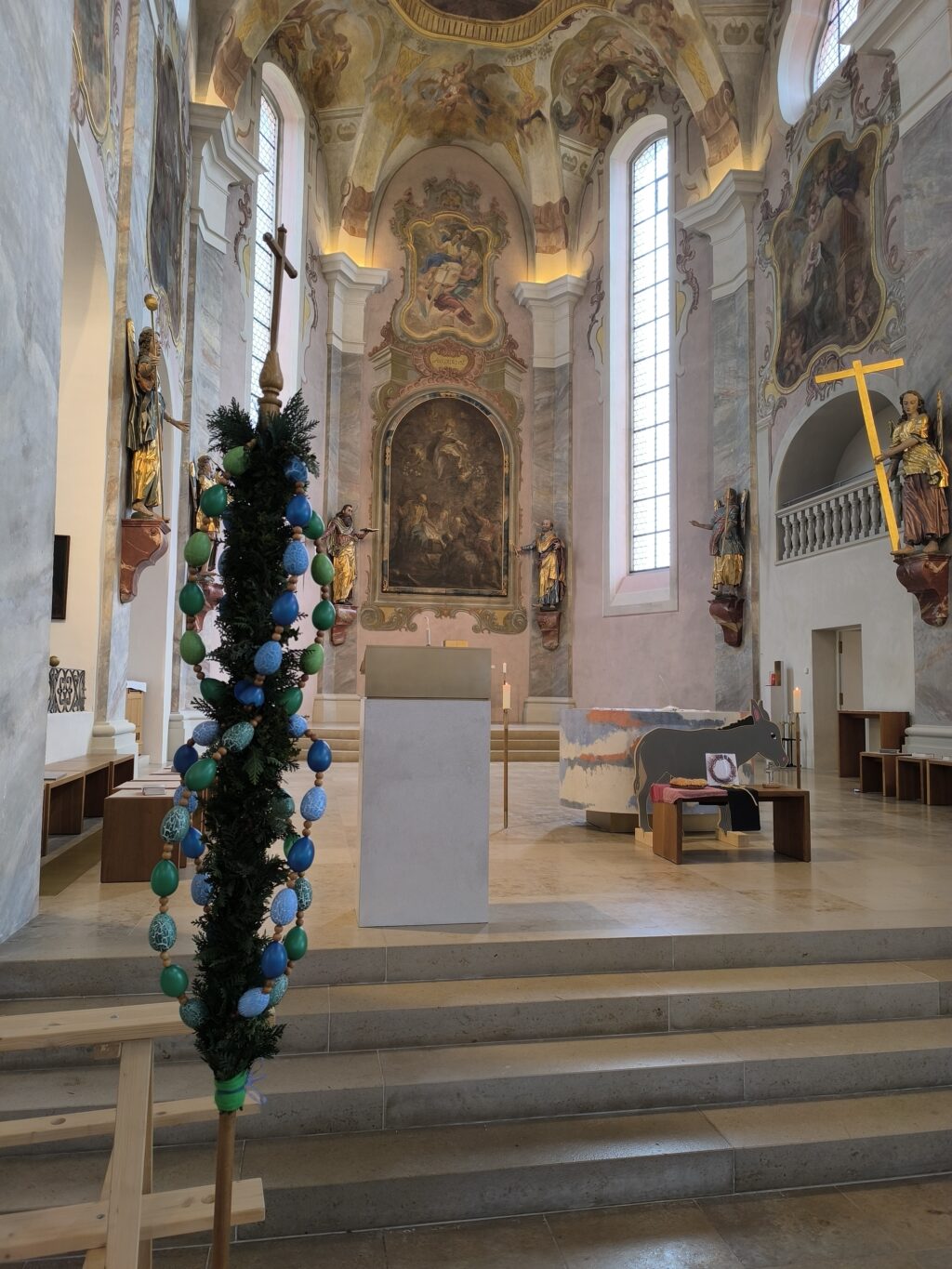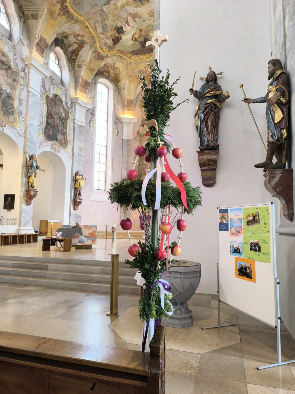 Für alle Kinder gab es am Ende des Gottesdienstes noch eine kleine süße Überraschung in Form einer Palmbrezel aus Hefeteig. Für die Teilnehmer des Familientags ging es anschließend zum gemeinsamen Mittagessen ins Gemeindehaus Reute. Bis zum frühen Abend verbrachten die Familien hier gemeinsame Zeit mit Impulsen zur Osterzeit, Kaffee und Kuchen sowie Spiel und Spaß im Pfarrgarten.