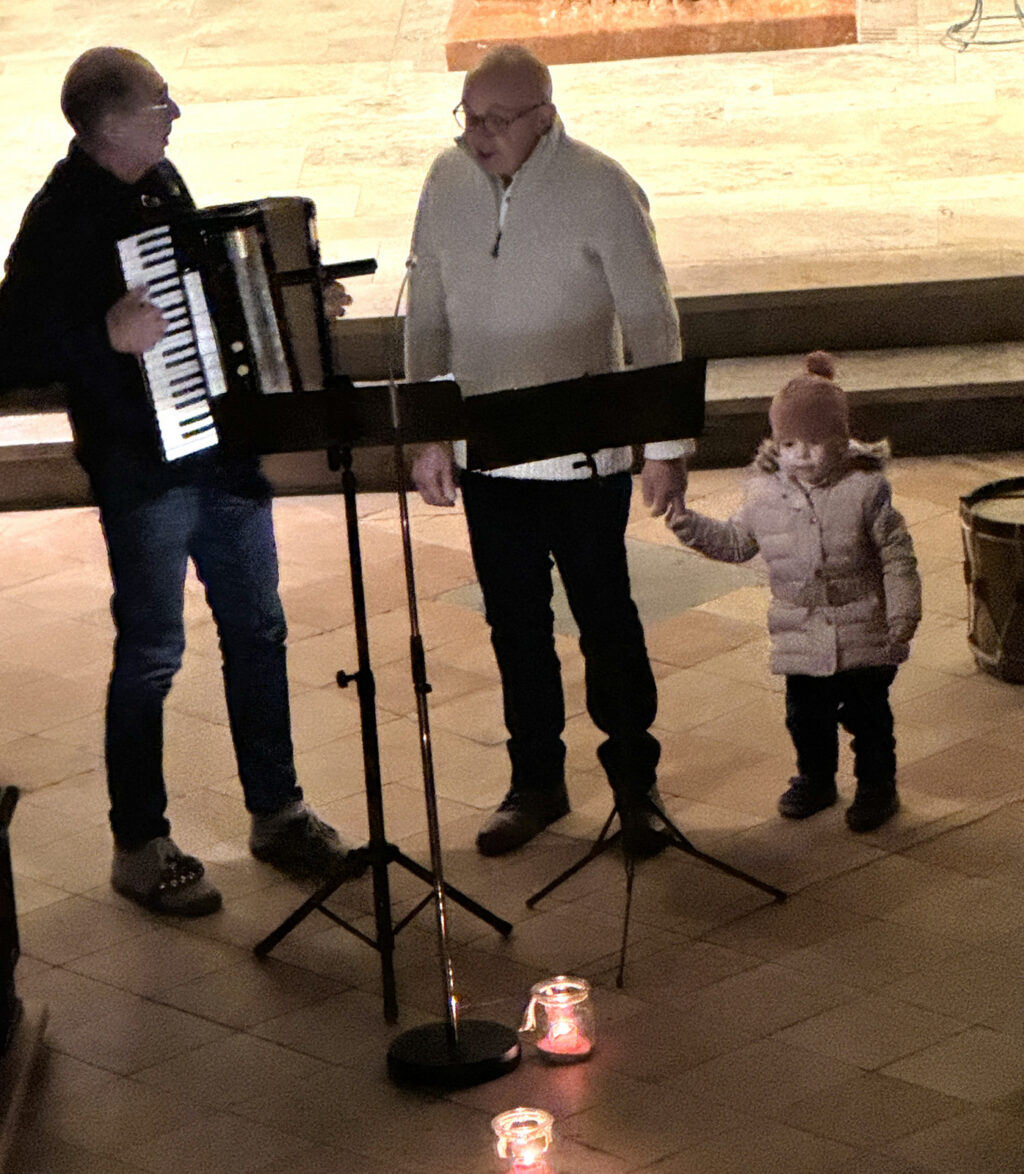 Verzaubert mit klassischen Melodien und Rhythmen hatte das Akkordeonorchester „Salemer Tal“ mit recht feinen Akkordeonklängen die noch ab 18.00 Uhr in der Kirche verbliebene, beifallsfreudige Zuhörerschar. Ganz zur Freude vieler Kinder war am frühen Nachmittag das Märchenprogramm von Erzählerin Dora Dipfele ebenfalls in die Kirche verlegt worden. Zum dritten Mal bei den Lichtmomenten ließen die Alphornbläser aus Schönwald/Schwarzwald bei mehreren Auftritten im Freien alpenländisches Liedgut erklingen. Dazu gehörte auch Liedgut wie der „Andachtsjodler“ oder auch “Jubilate Domino“.