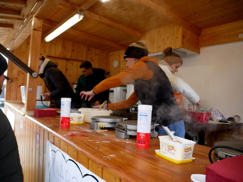 Das kulinarischen Angebot war umfassend und vielfältig. Lange Wartereihen bildeten sich bei den Versorgungsständen. Waffeln, Glühmost und Kinderpunsch gab es bei der Narrenzunft „Waldhex“ .Die Jugendabteilung des Sportvereins fand mit Pommes, Steaks und Würsten sowie Getränken reißenden Absatz. Der Musikverein bot dieses Mal unter den Arkaden heiße Suppen und Glühwein an. Die  kulinarischen Feinheiten in Bettina Daibers Essbar und Chocolaterie mit leckeren Suppen, Käse-Angebot sowie die Sekt- und Weinverkostung fanden wie gewohnt besten Zuspruch. Der Förderverein der Grundschule und des Kindergartens bewirtete im Pfarrgemeindesaal. Riesig war hier die von Eltern gespendete Torten- und Kuchenauswahl. Auch die Haisterkircher Ministranten hatten einen Stand aufgebaut und boten besonders für die junge Generation Sandwiches und heißen Kaba an. Stets umlagert war die Versorgungsstation der Rollerfreunde Osterhofen. Dort erfreuten sich vor allem Erwachsene an herzhaften Burger-Angeboten und Drinks. „Brianix-Gins“ mit Glüh-Gin und Gin-Tasting hatte im Freigelände des Klosterhof-Areals eine ganz spezielle Kundschaft gefunden wie auch das Q-Eis von Beate Bühler. Ein Eisangebot vom Feinsten auch an kalten Wintertagen.