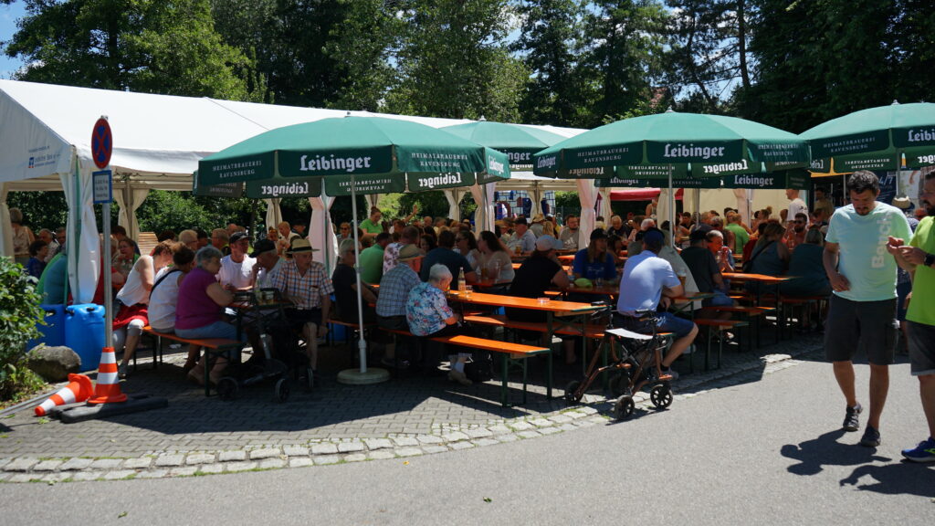 Der Mittagstisch war gut besucht und die Besucher und Besucherinnen ließen sich die frisch zubereiteten Speisen und kühlen Getränke schmecken. Im Zelt und unter den Schirmen herrschte eine entspannte und gesellige Atmosphäre, die von der Musik des MV Molpertshaus untermalt wurde. Für die kleinen Gäste war wieder bestens gesorgt: Die Kinderspiele sorgten für Begeisterung und viel Bewegung. Mit Geschick, Kreativität und jeder Menge Spaß konnten sich die Kinder an verschiedenen Stationen austoben.