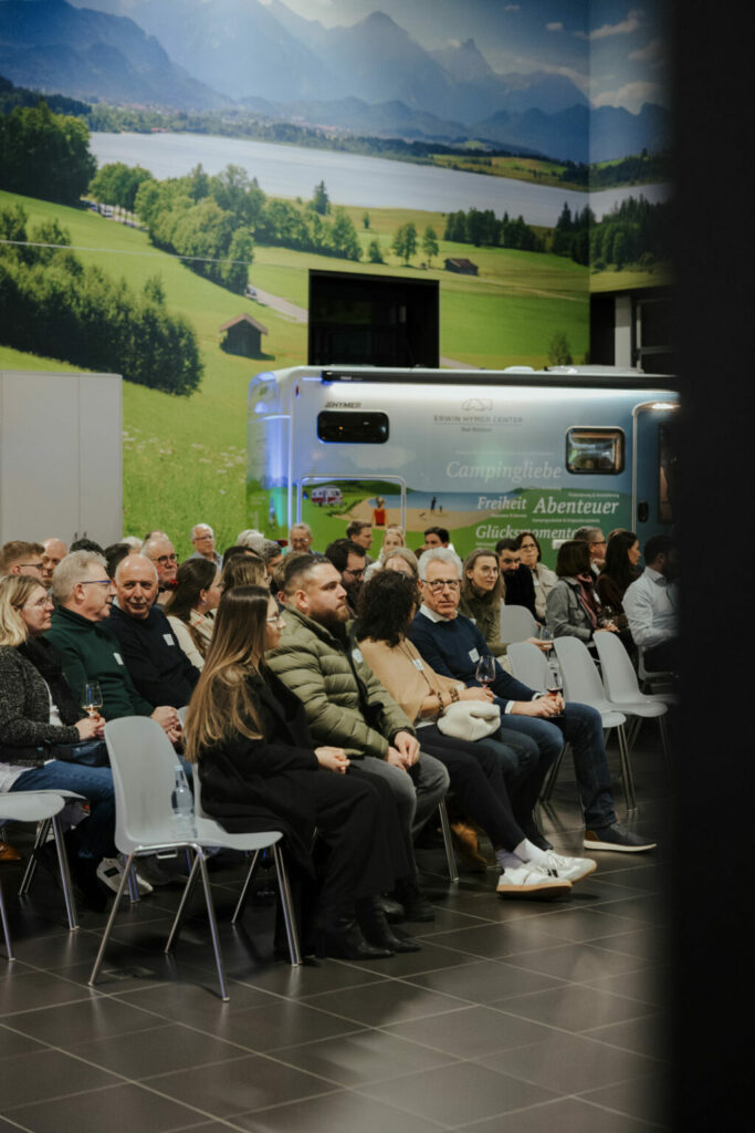 Highlight des Abends war die eindrucksvolle Präsentation des zukunftsweisenden Projekts EHC goes forward“ durch den Gastgeber, Heiko Tichanow vom Erwin Hymer Center.